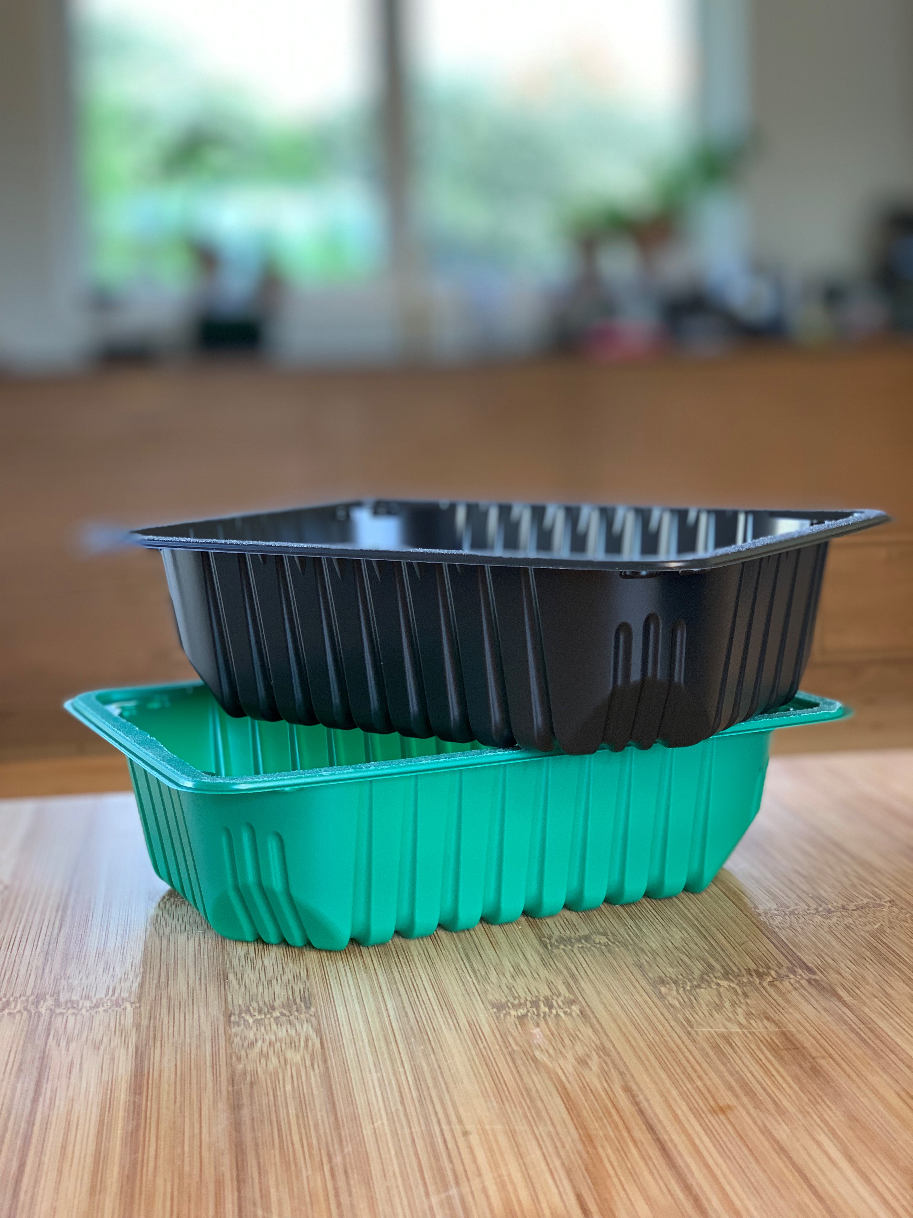 Udskiftningen til den mere miljøvenlige emballage gælder både Danish Crowns sorte plastikbakker og datterselskabet Frilands grønne bakker.