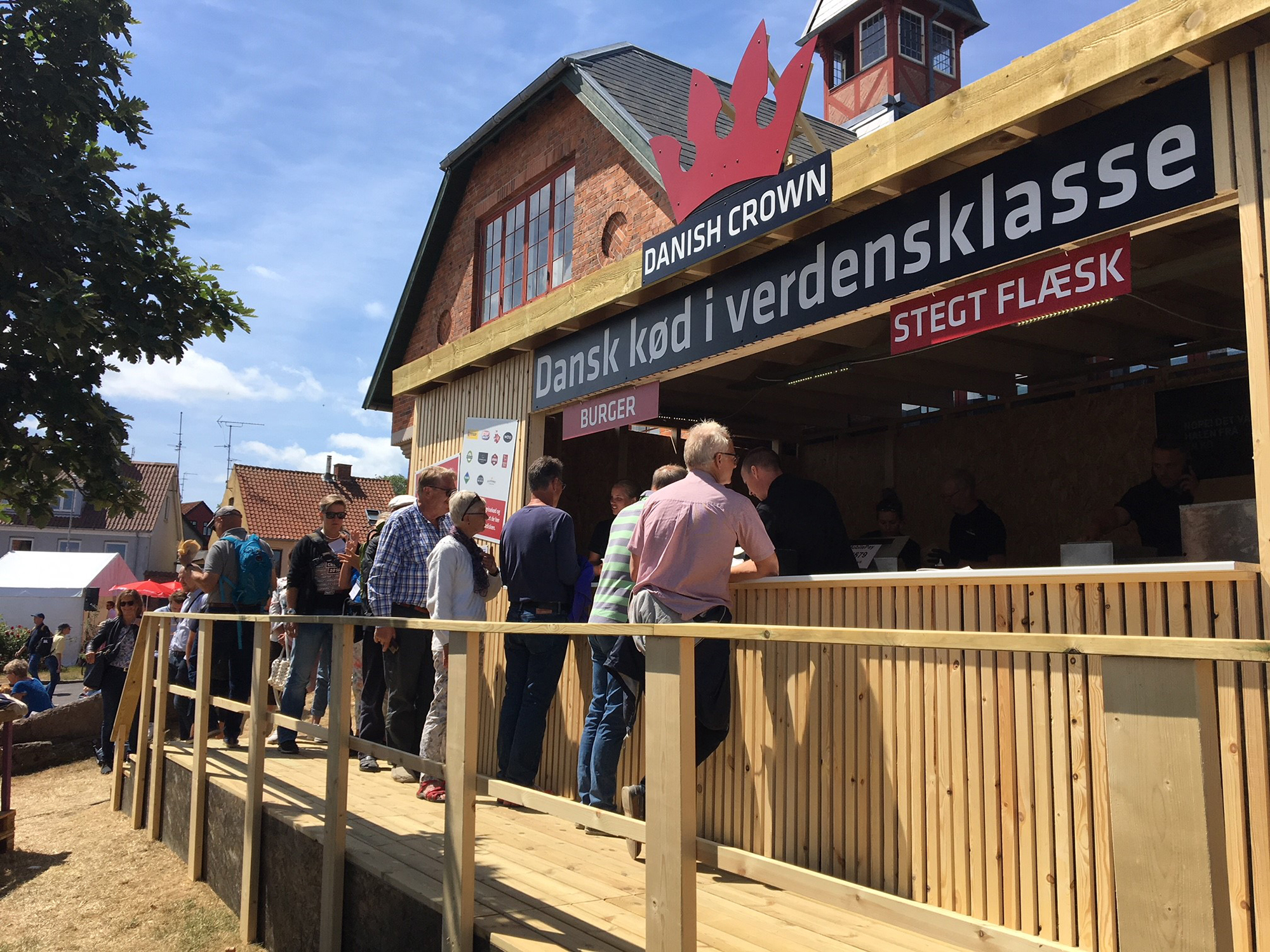Danish Crown har i år tre madboder på Folkemødet. Den største er placeret ved Folkemødets trafikale knudepunkt og her sælges der burgere med dry-age oksekød og stegt flæsk med persillesovs. Danish Crowns andelshavere på Bornholm har sagt ja til at hjælpe til i madboden, og det åbner muligheden for direkte dialog mellem landmændene og forbrugerne.