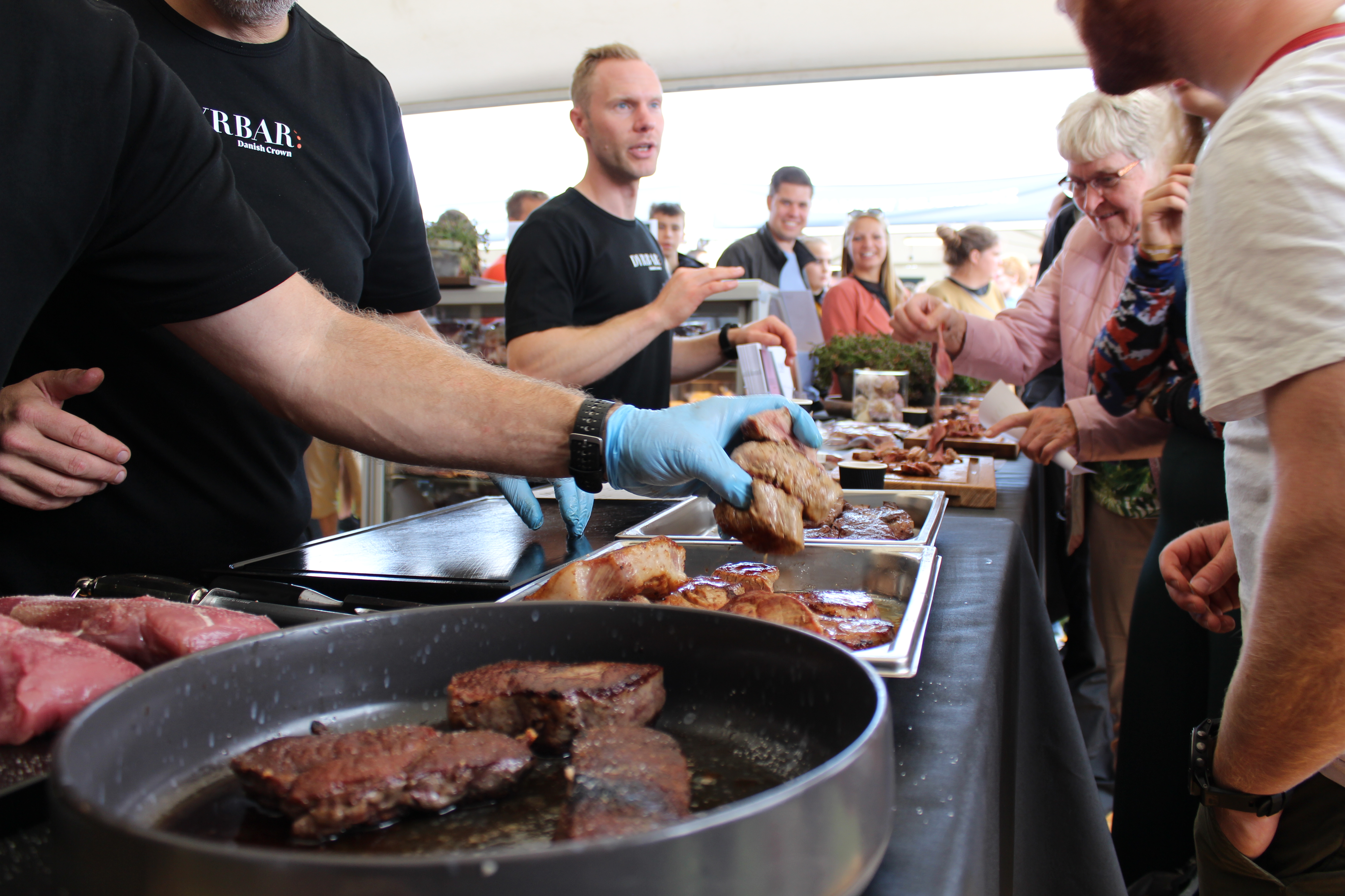 - Food Festival er en gylden mulighed for os til at komme i dialog med forbrugerne. Gæsterne er som regel både nysgerrige og spørgelystne. Vi elsker at nørde krogmodning, tilberedning og alt derimellem, så festivalen er en god mulighed for at fortælle om vores kvalitetskød og dele vores passion med andre madinteresserede. Der er stadig mange, som bliver overrasket, når vi for eksempel fortæller, at grisekød gerne må steges rosa, men når de så ser og smager, hvad krogmodning gør for en nakkekotelet, så får de øjnene op for, hvad gris – og ikke mindst Danish Crown – også kan, siger Maria Gram, som er ansvarlig for Dyrbars stand ved Food Festival.