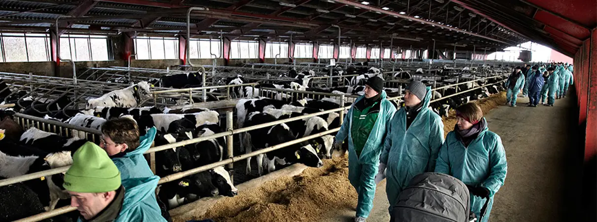 Dagen starter på DKC (tidligere kaldet KFC). Her skal vi se krydsningskalve, der er i forsøg, hvor der måles tilvækst, foderudnyttelse, slagtedata og økonomi. Kalvene vil på det givne tidspunkt være cirka 9 måneder gamle.