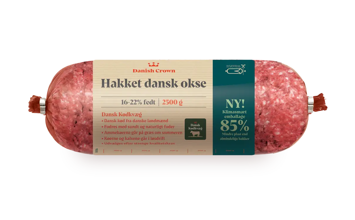 - Der er nogle helt åbenlyse fordele ved den her måde at emballere vores hakkede oksekød på. Først og fremmest reducerer vi forbruget af plastik til et absolut minimum. Samtidig er kødet pakket uden luft, som sikrer, at holdbarheden fra produktionsdato forlænges fra 7 til 14 dage, så alt i alt er der et plus på bæredygtighed for både mindre plastforbrug og mindre madspild, siger Claus Hein, der er salgsdirektør i Danish Crown Beef.