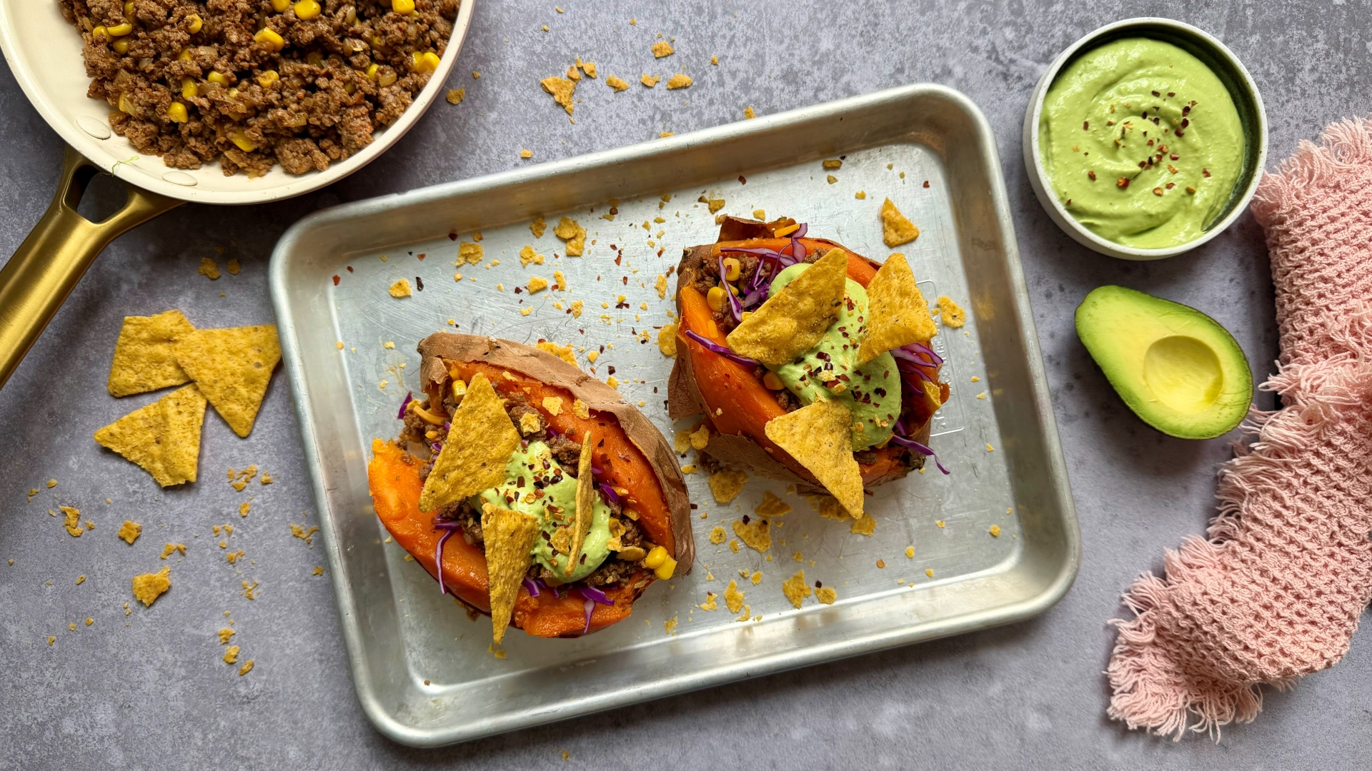Bacon steaks med grillede kartofler, majs og tzatziki