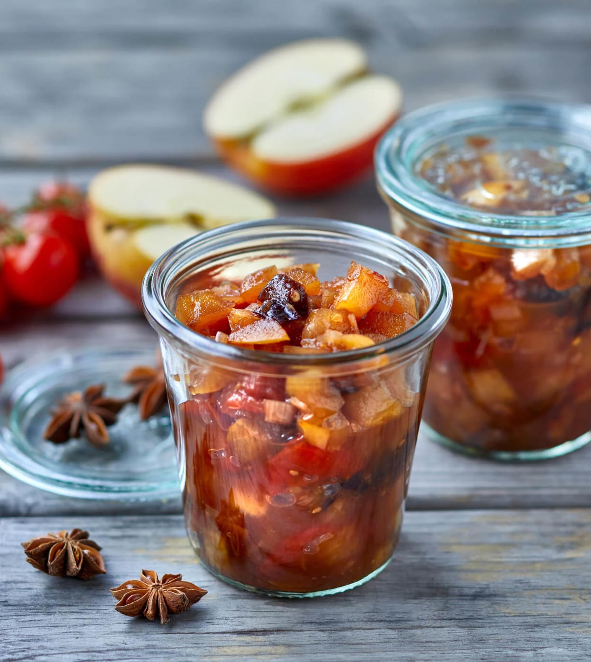 Æblekompot med cherrytomater og svesker