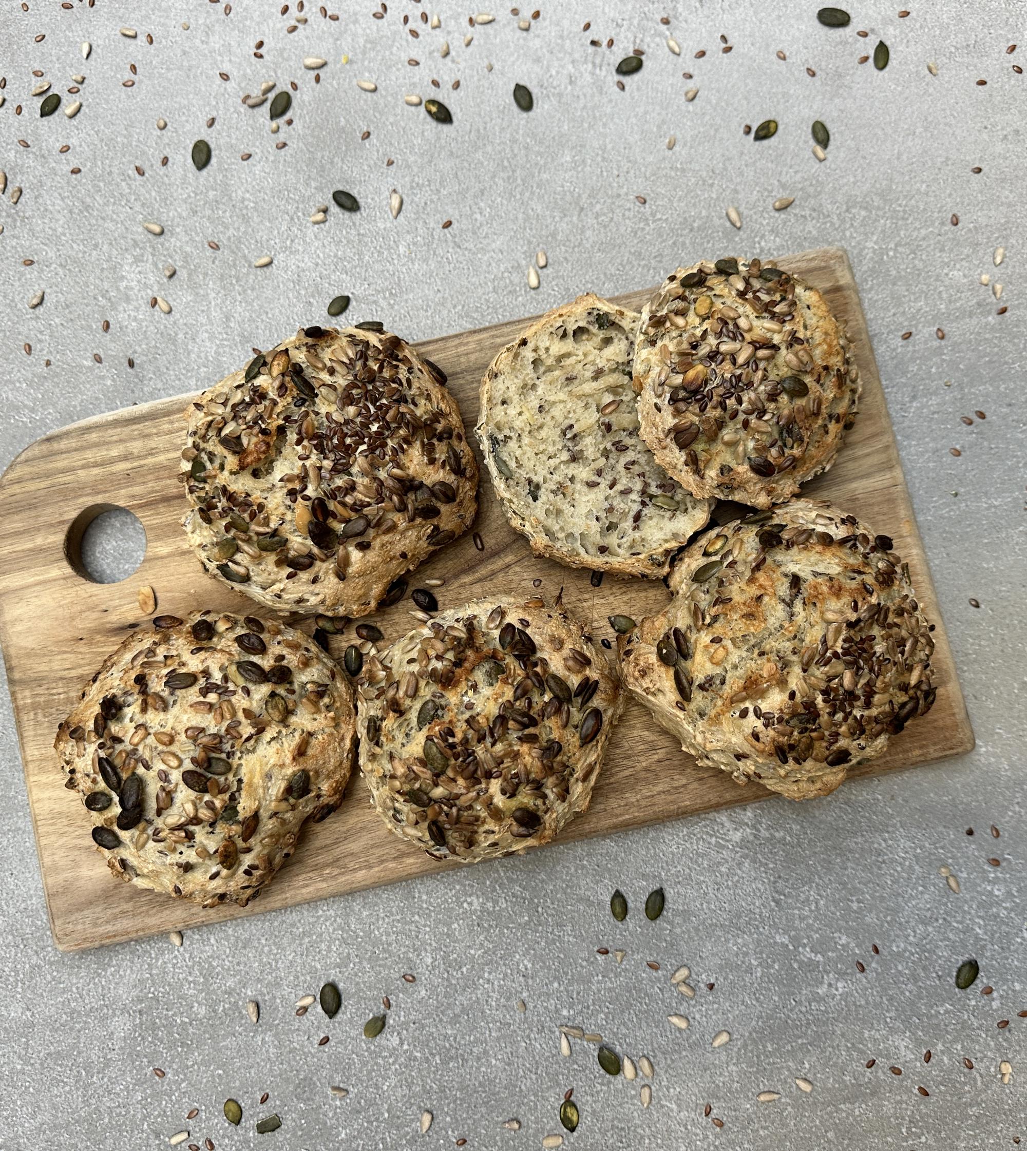 Fuldkornsfocaccia sandwich med hamburgerryg