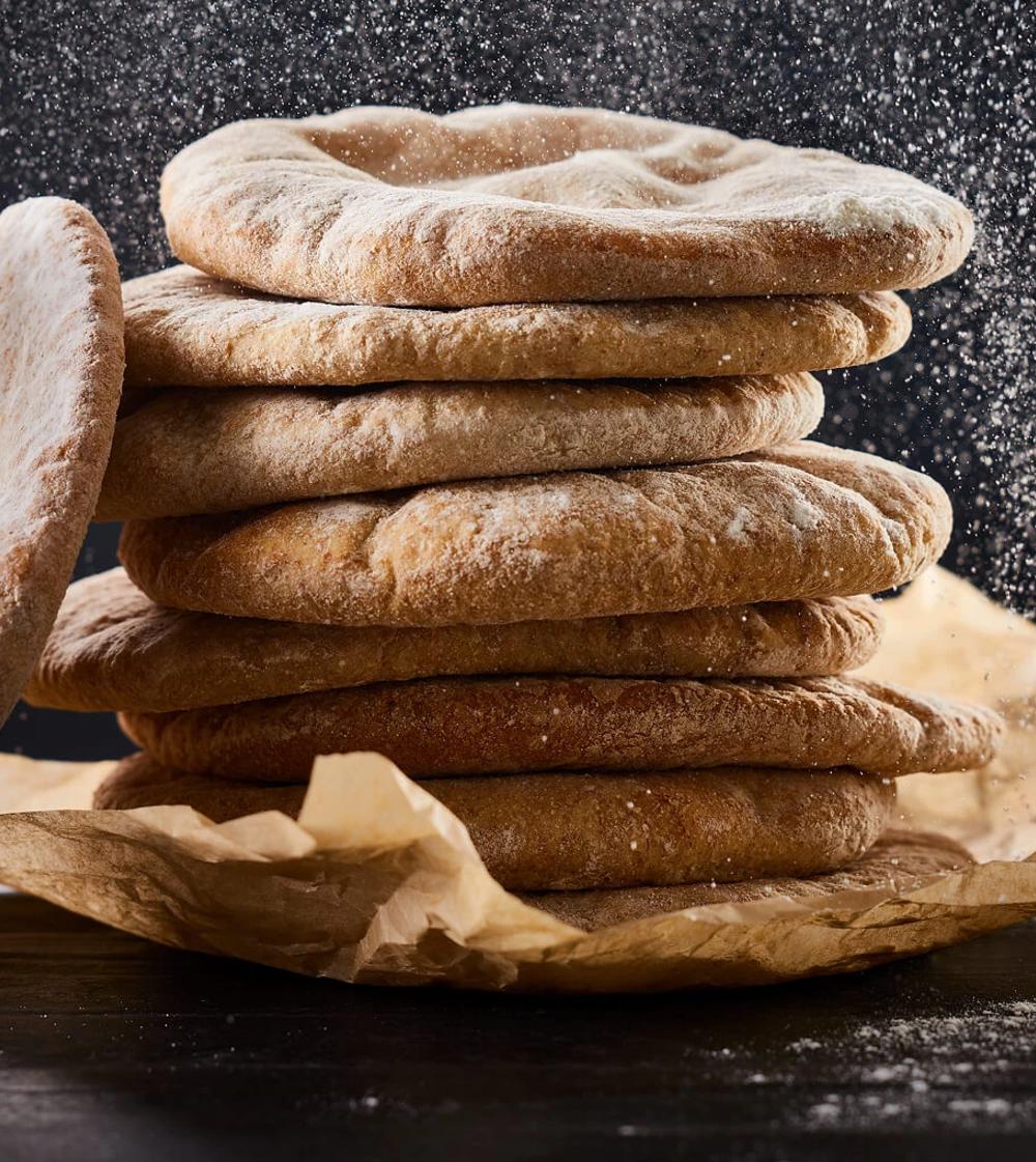 Hjemmelavede pitabrød med bønnesalat og gulerodshummus