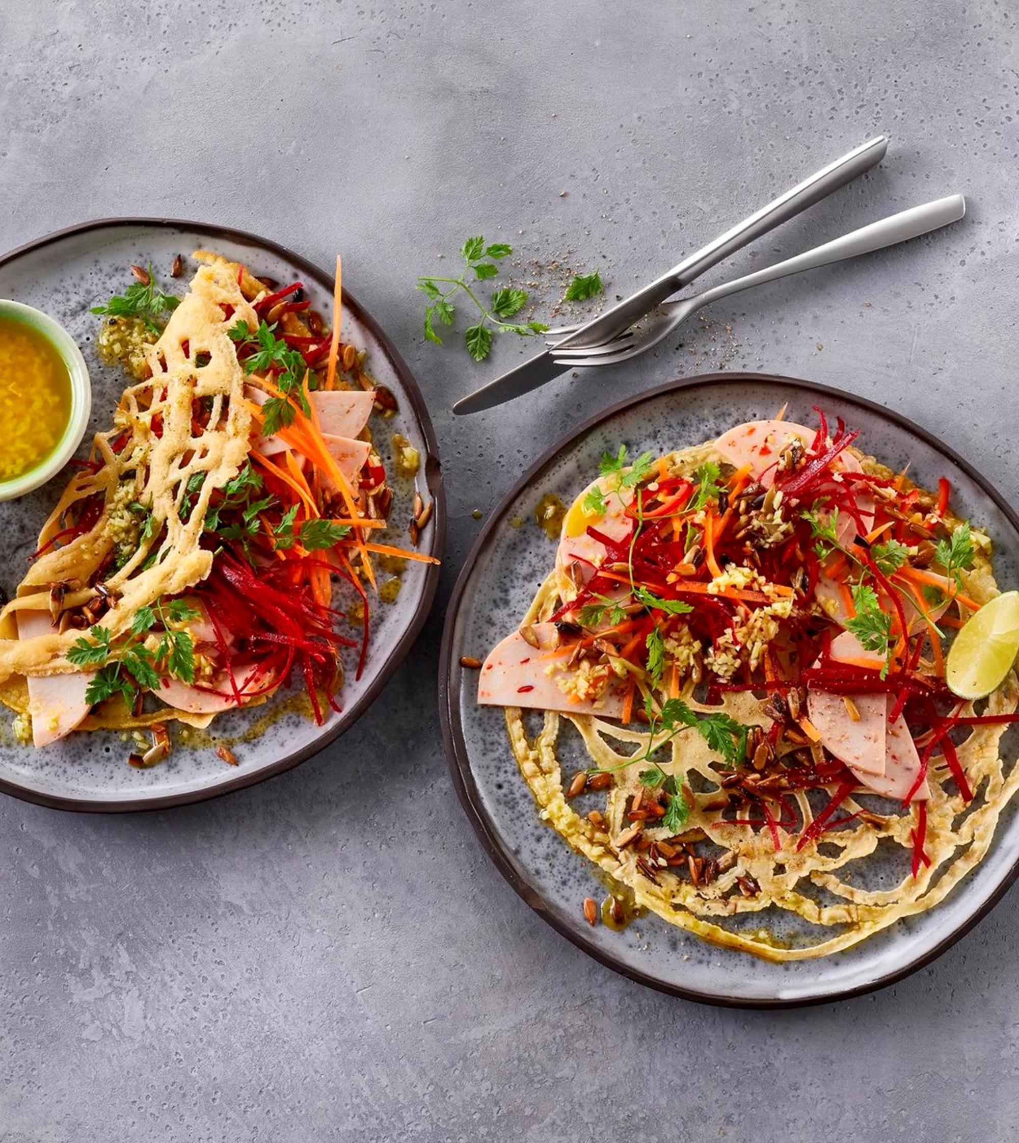 Majswrap med Røget Filet, quinoa, rødbede og salatost