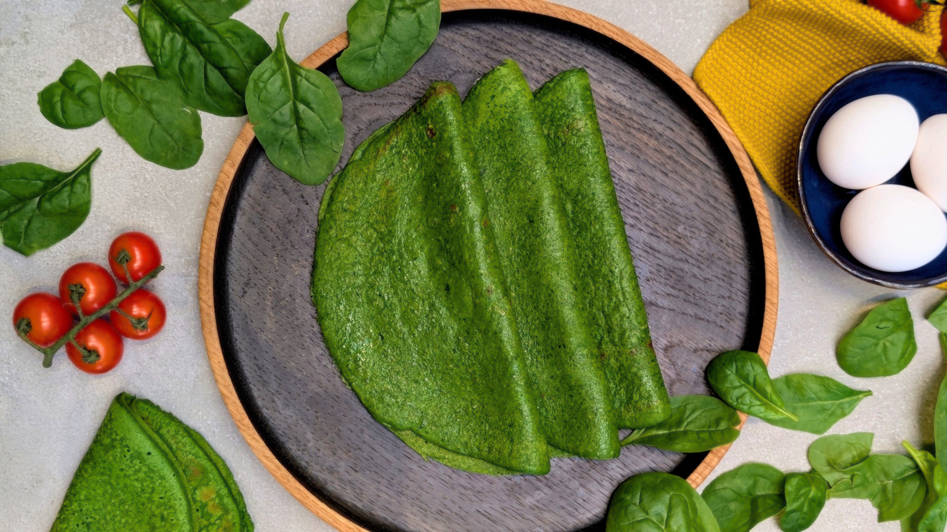 Fuldkornswrap med hamburgerryg, kalkunbacon og spinat