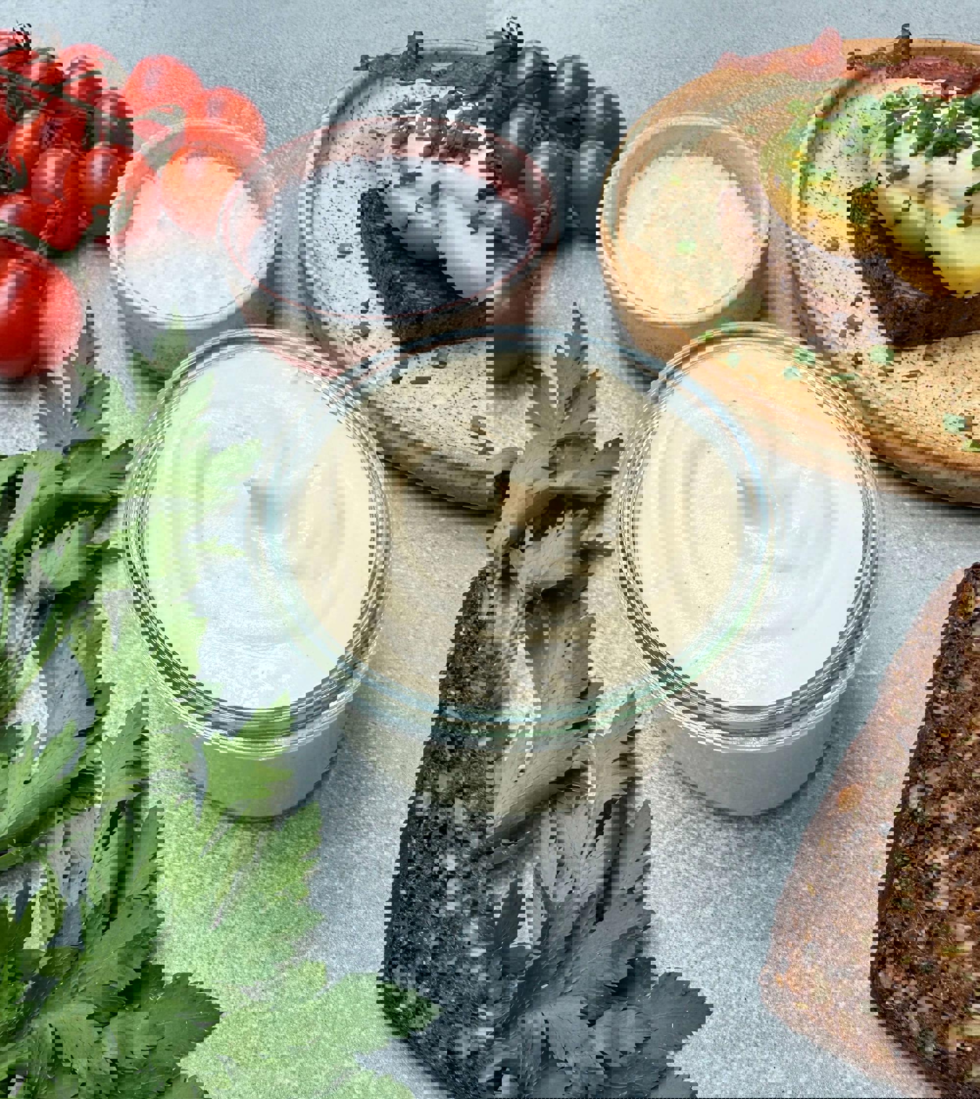 Sandwichbrød med nødde-smøreost, syltede rødløg og kylling