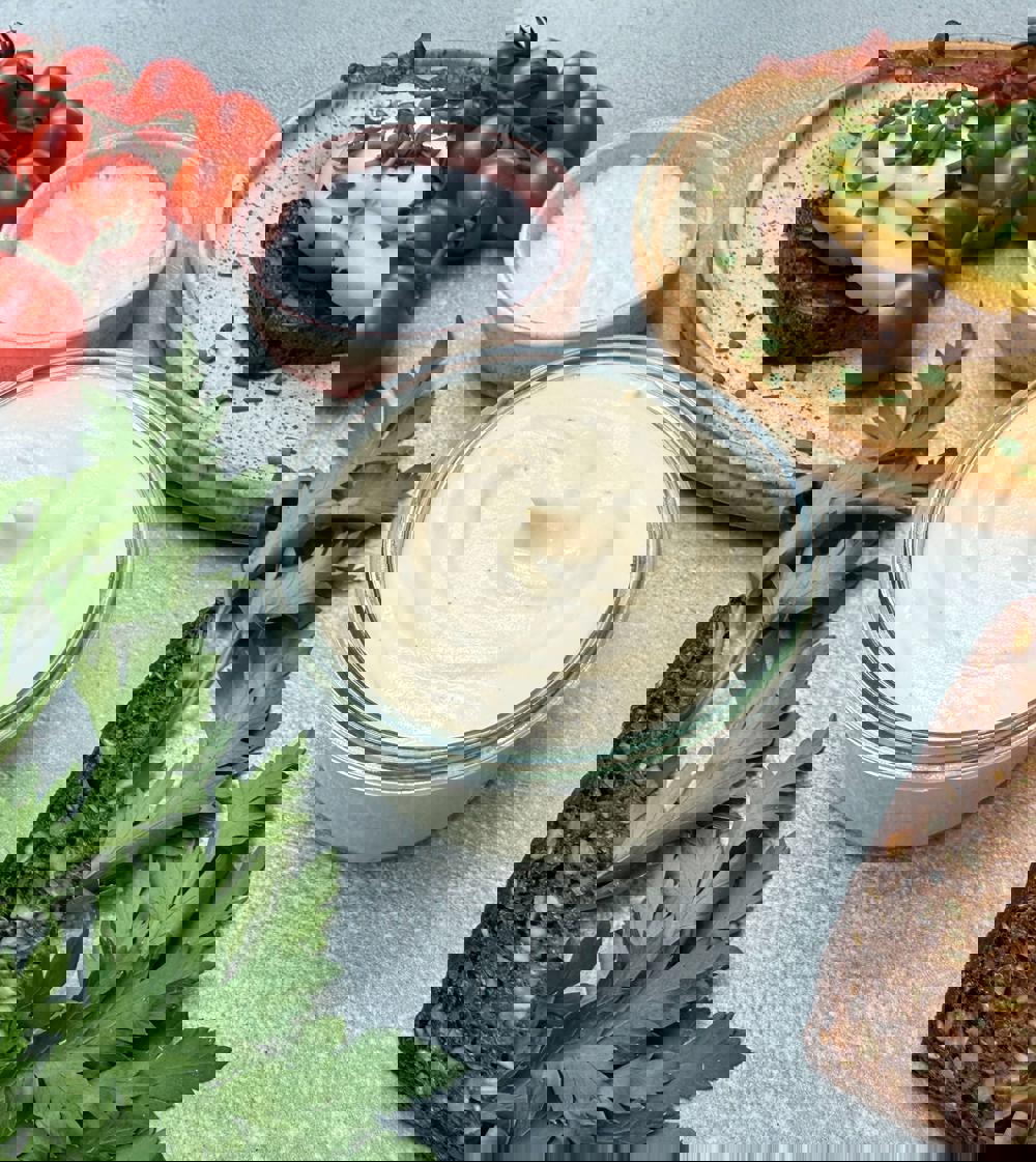 Fladbrød af hytteost med hamburgerryg