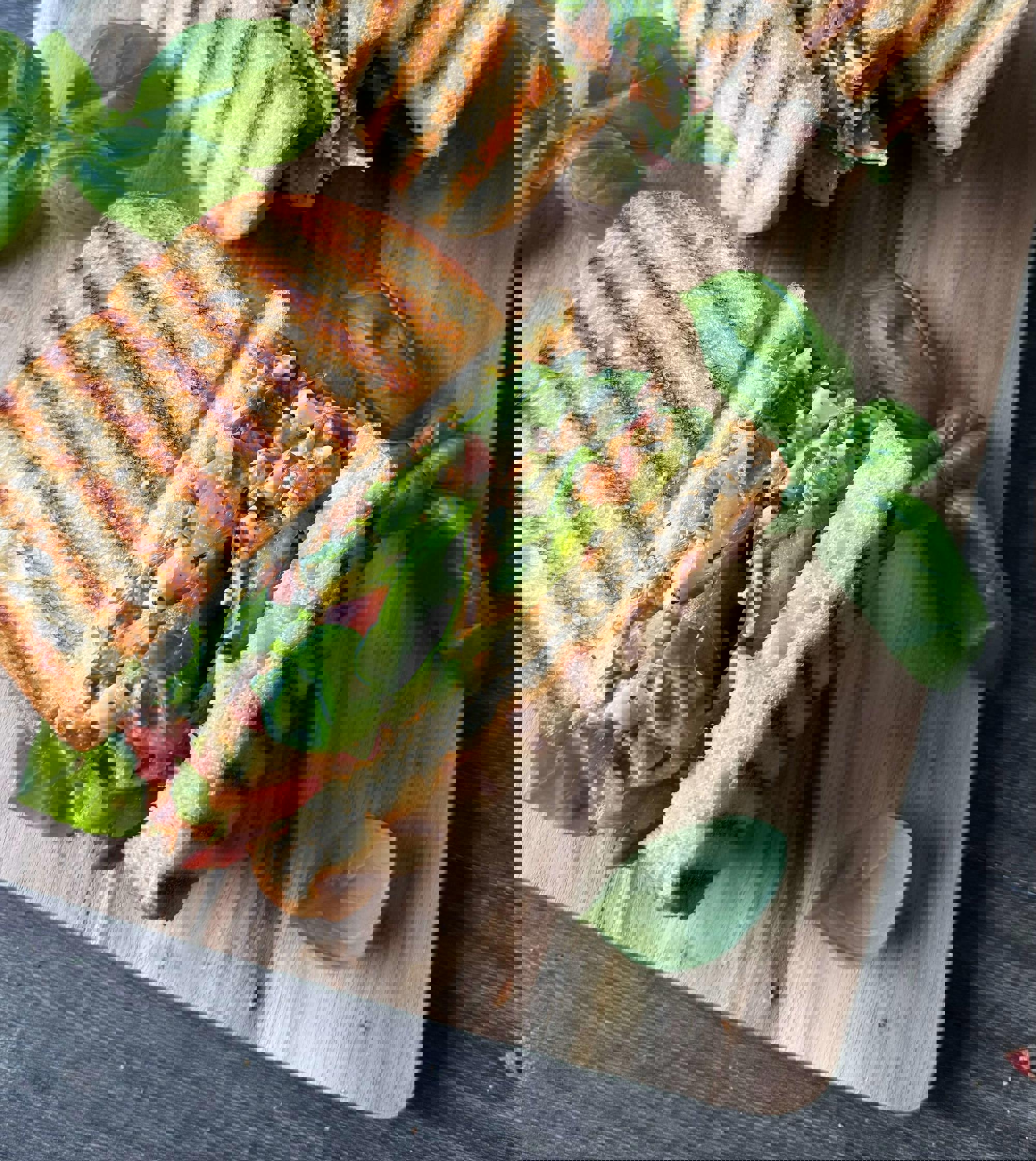 Fuldkornsfocaccia sandwich med hamburgerryg