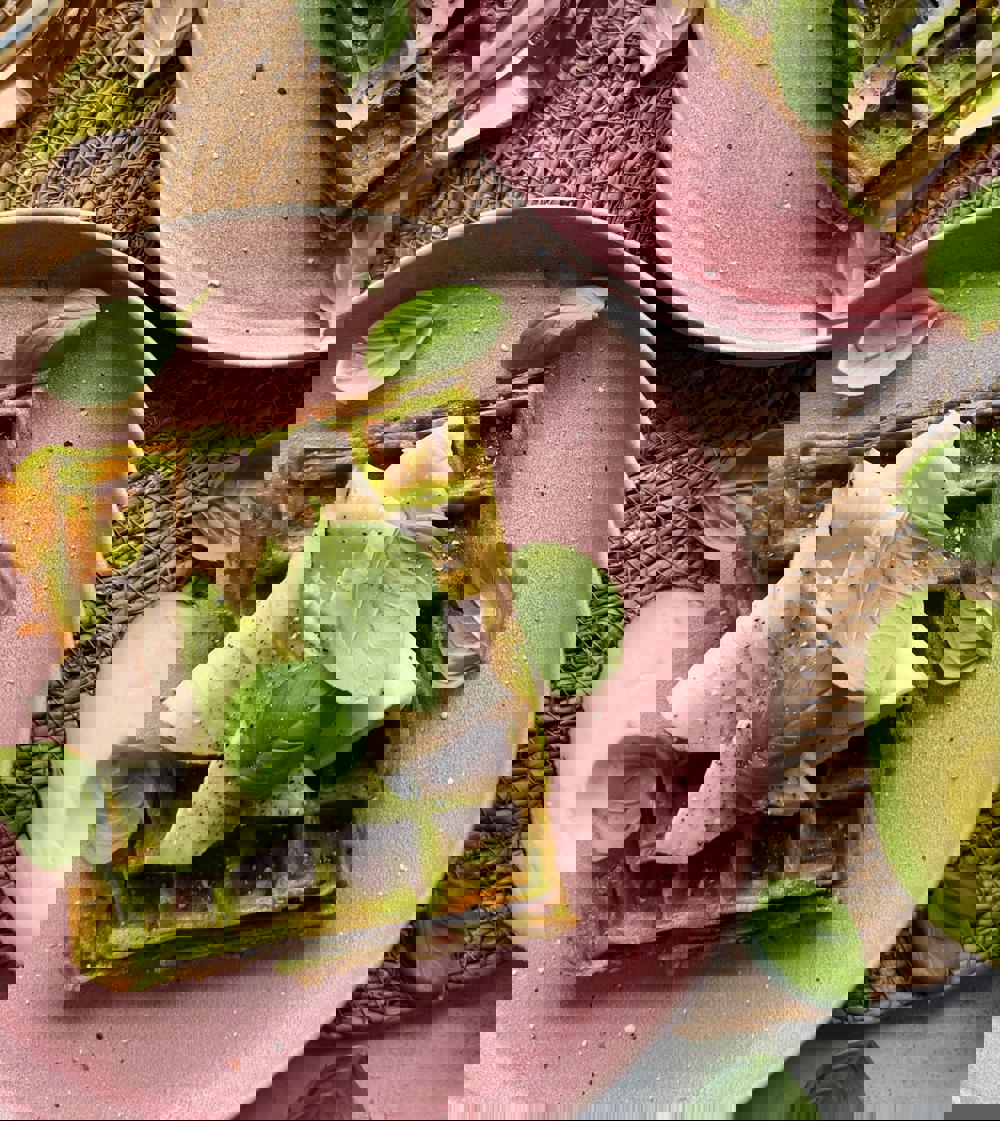 Fuldkornsfocaccia sandwich med hamburgerryg