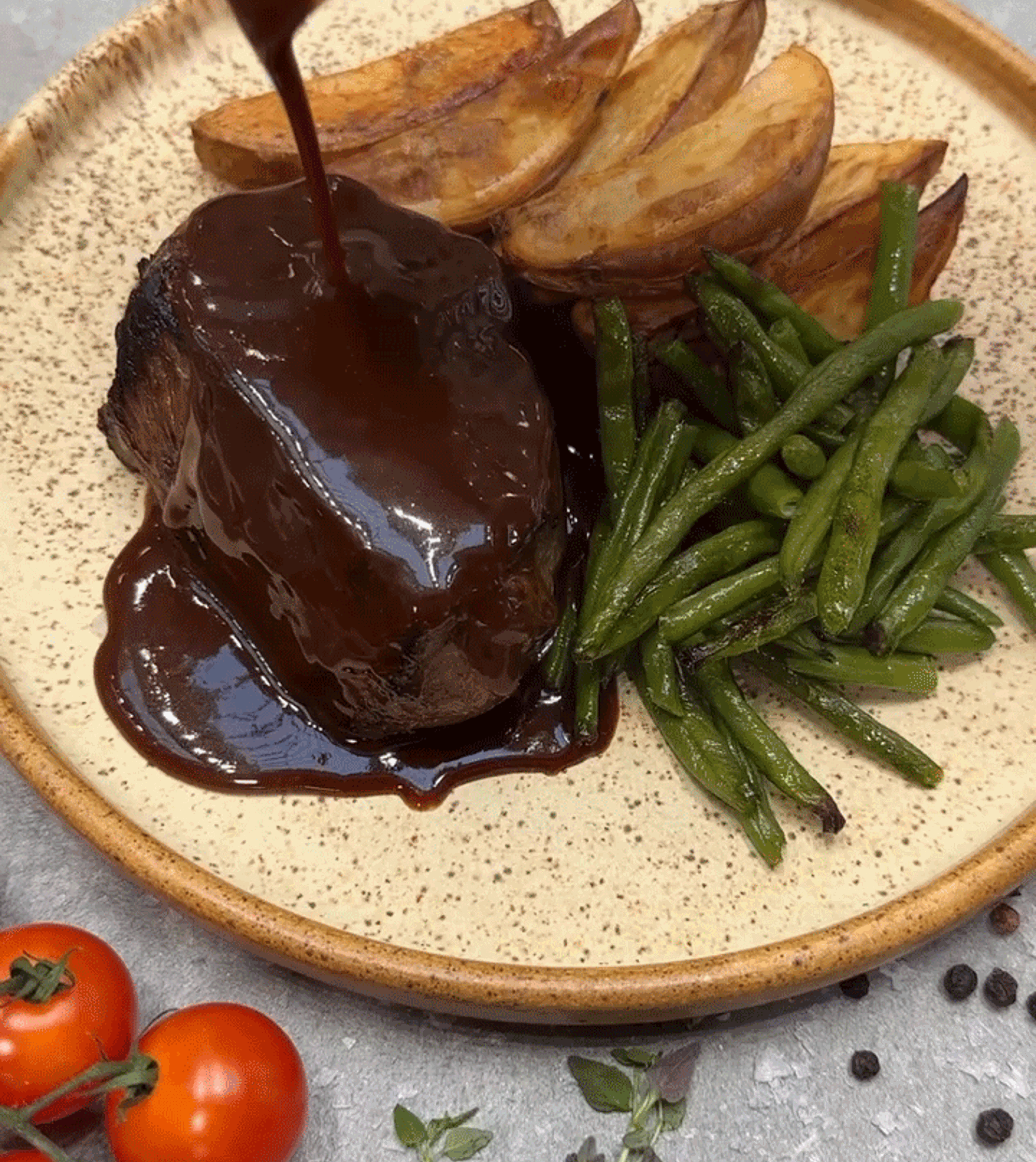 Mørbrad i baconsvøb & kartoffel-bønnesalat