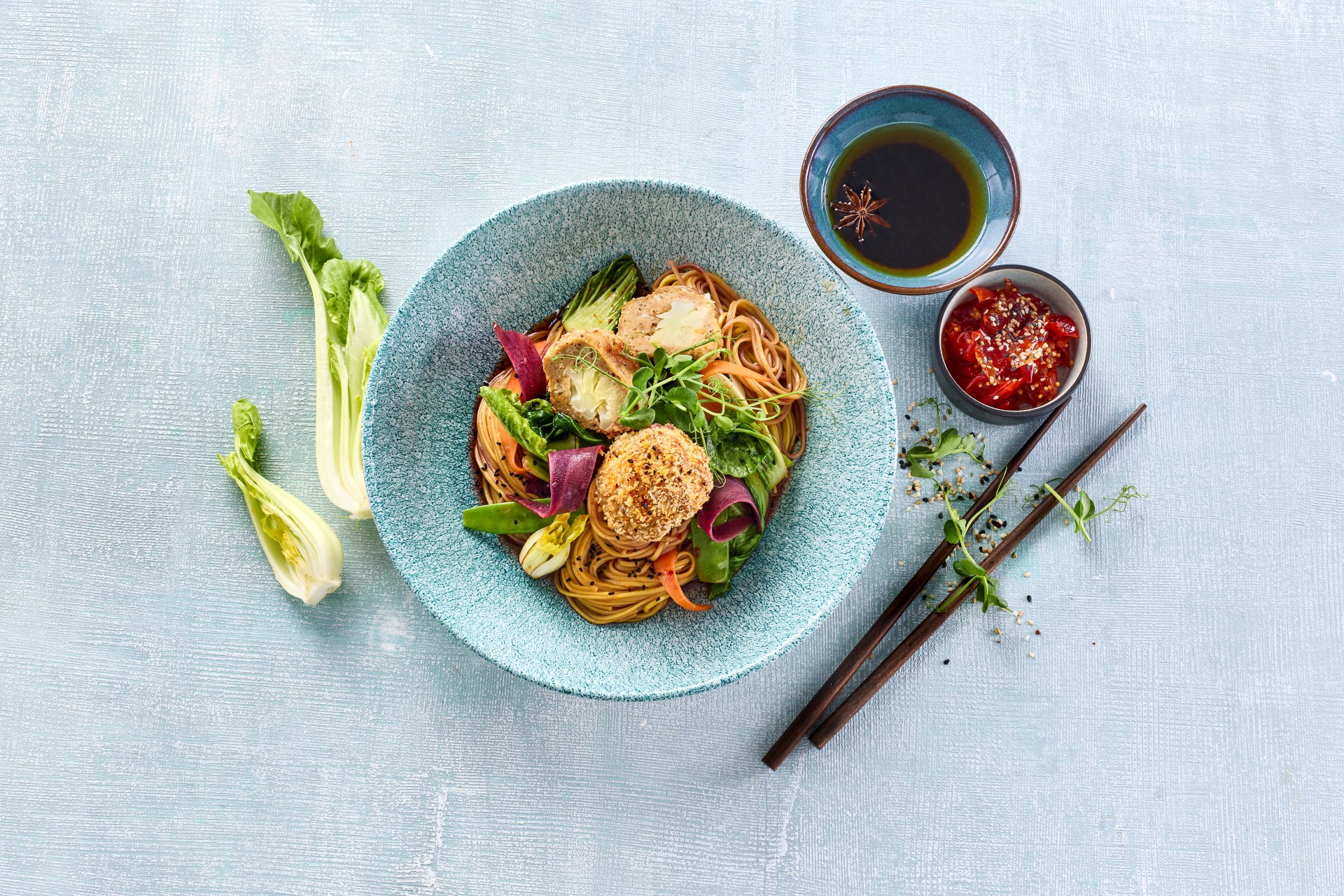 Kotelet paneret i frø og kerner med blomkålscreme og salat