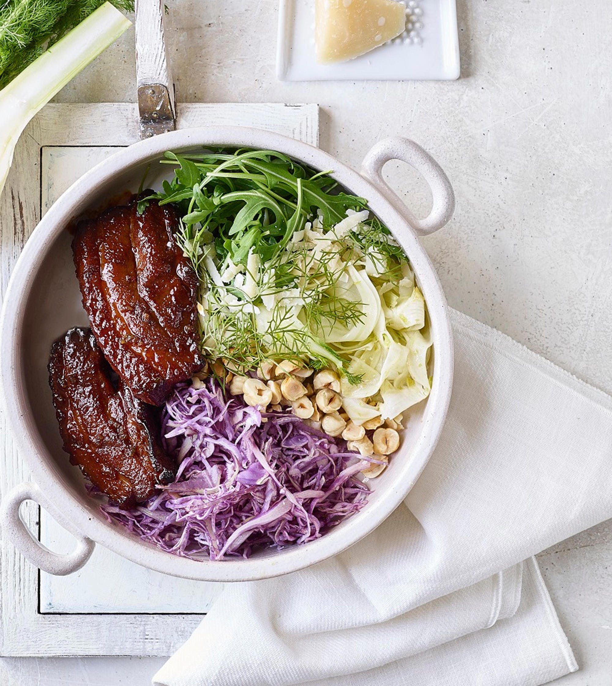 Ølmarineret revelsben med salat af fennikel & rød spidskål