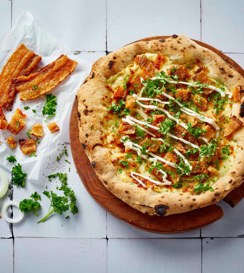 Pizza med stegt flæsk