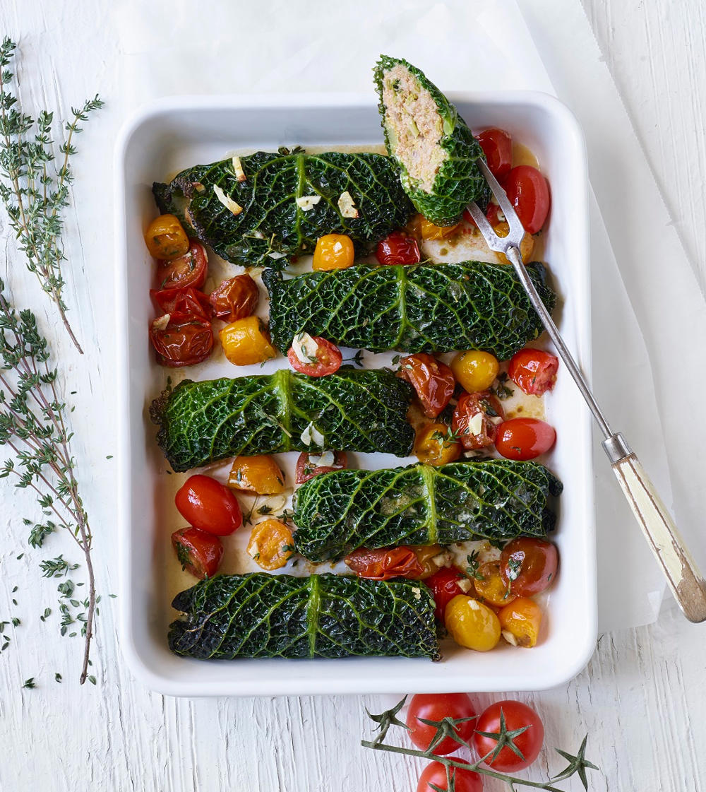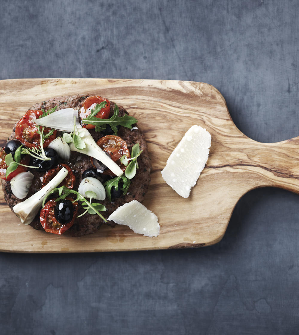 Stegt kalverib-eye med polenta, tomater og grillede forårsløg