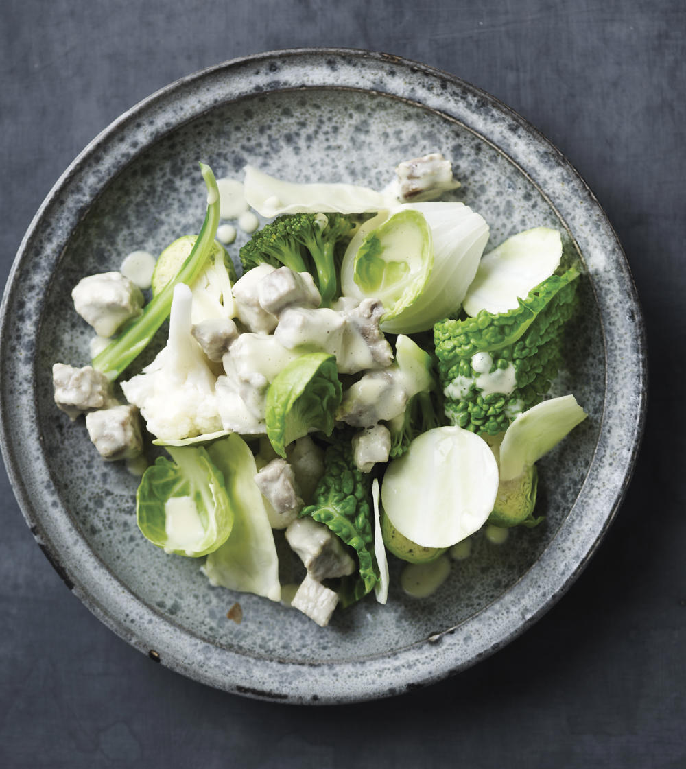Kålsalat med mormor-dressing, kartofler og sprød bacon