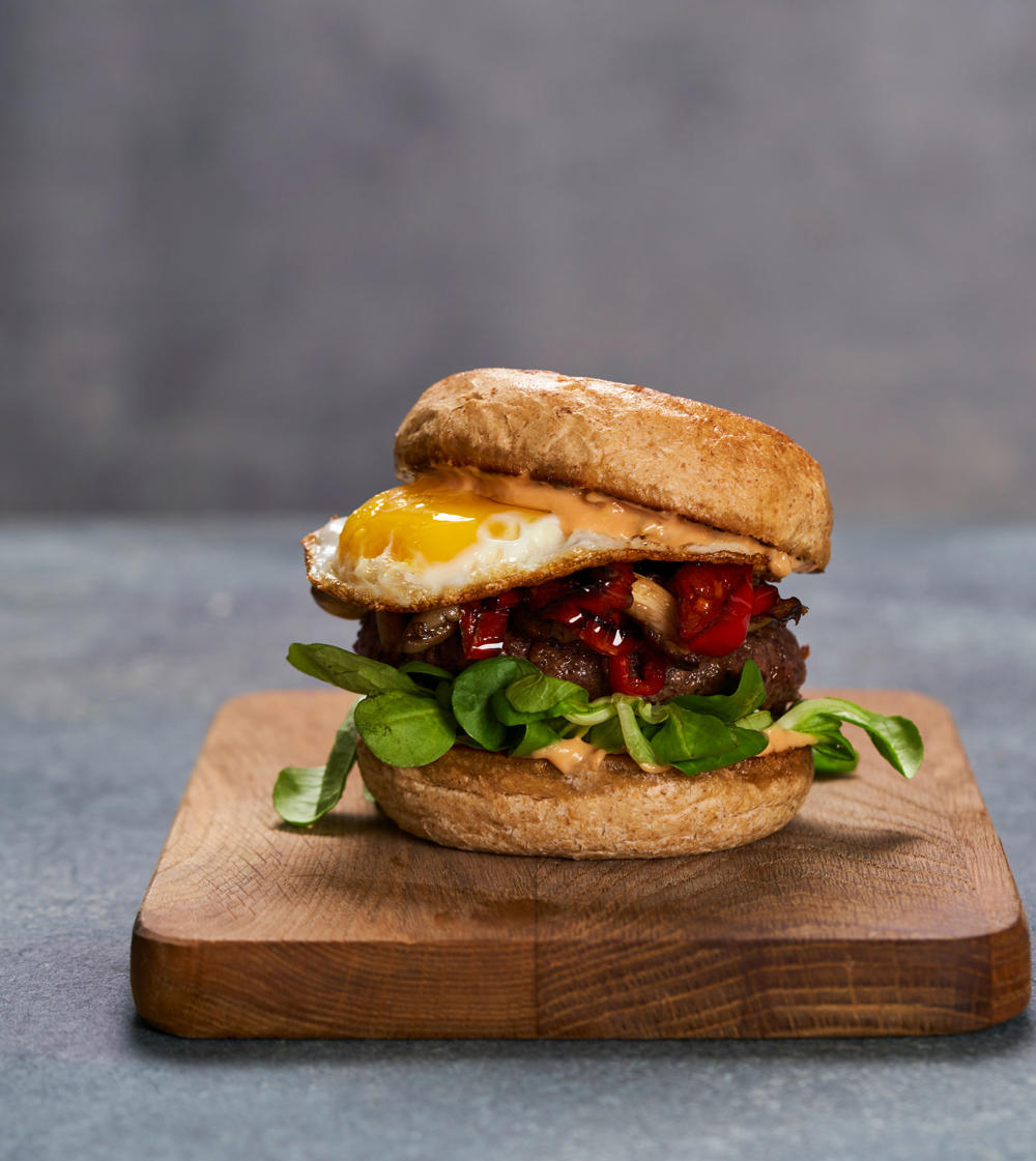 Burger med røget skinke og hytteost