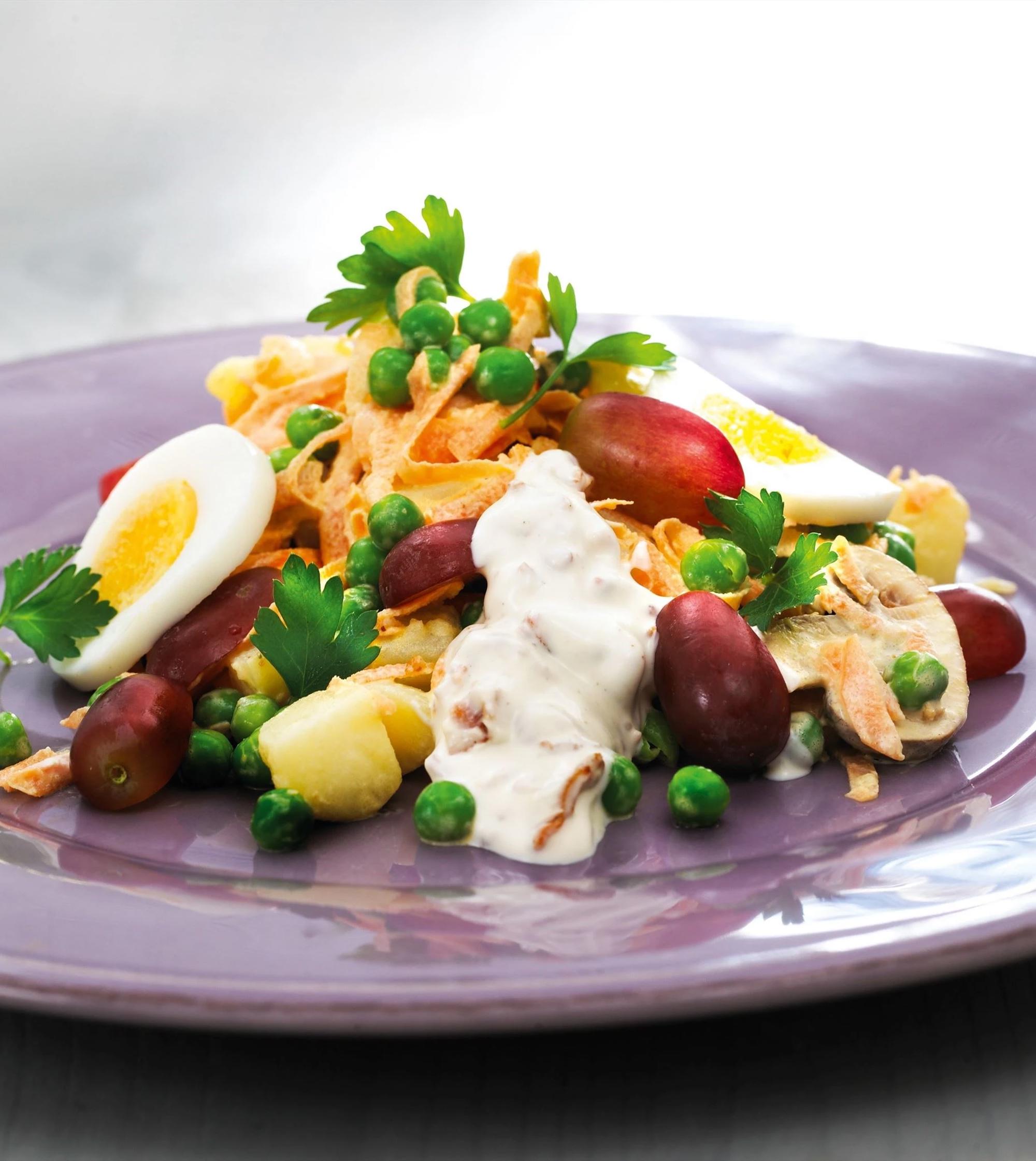 Kålsalat med mormor-dressing, kartofler og sprød bacon