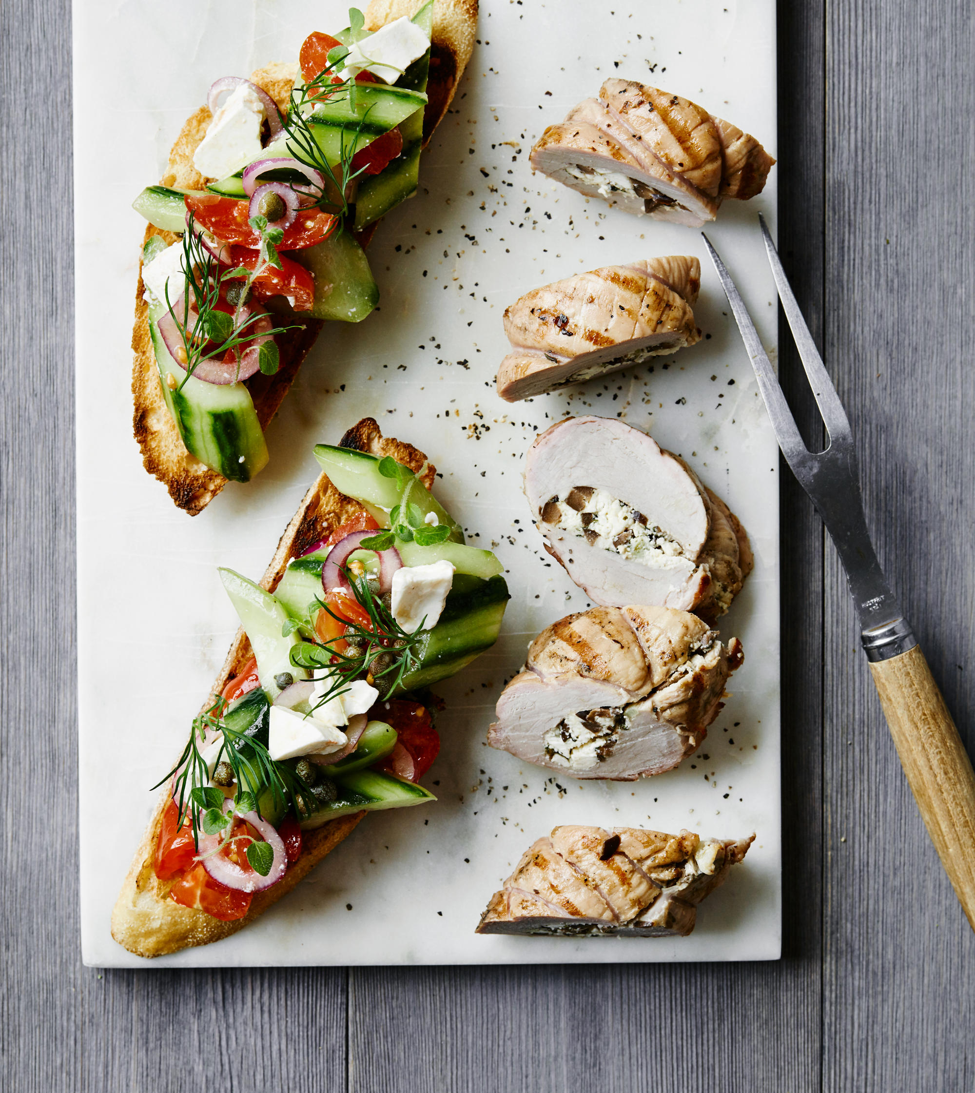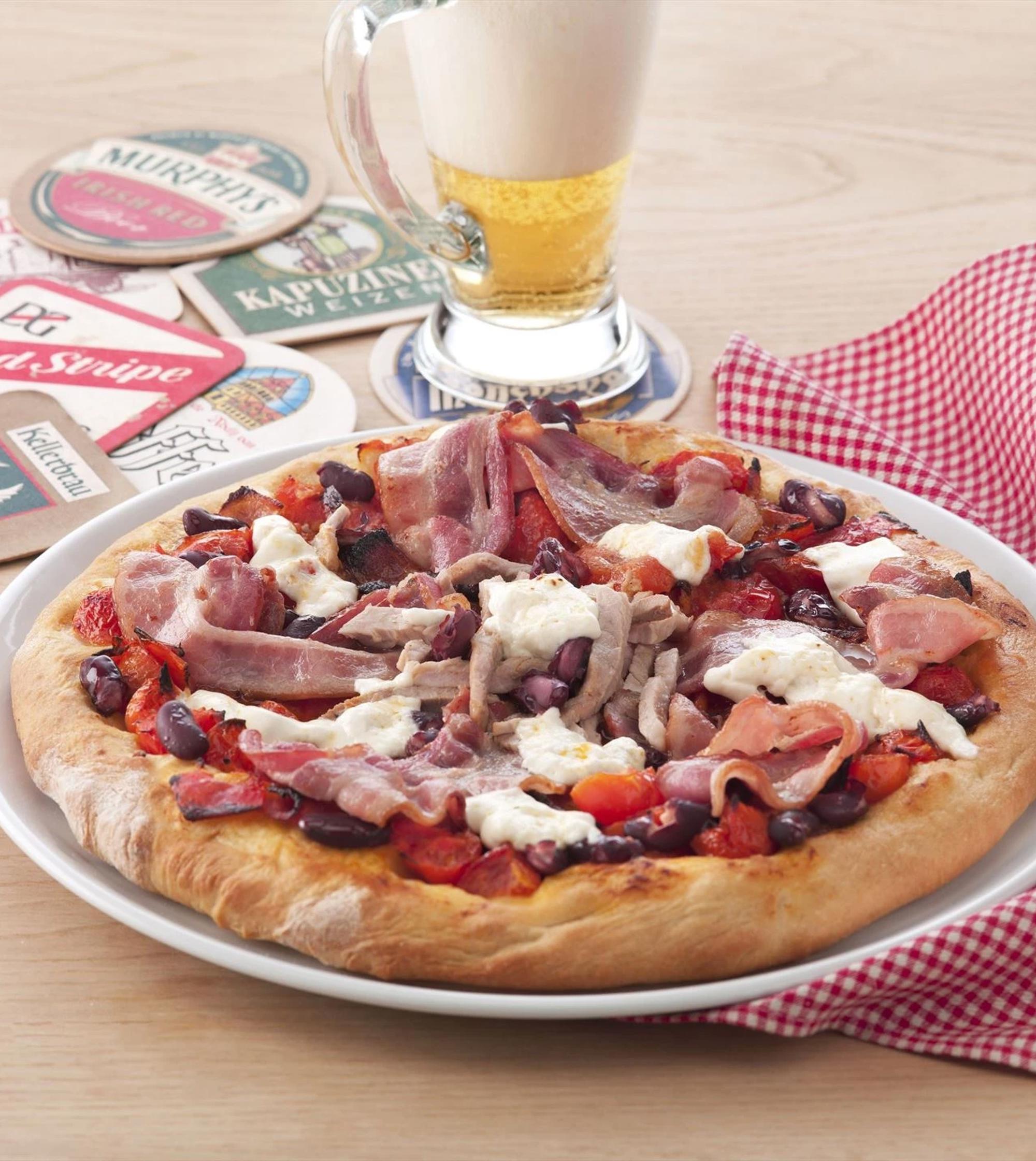 Mørbrad med syltet bacon, tomatsalat og rucola is
