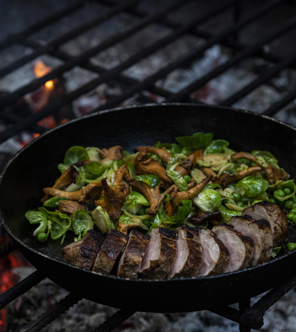 Grillet kalvespidsbryst på spyd med tomatsalsa