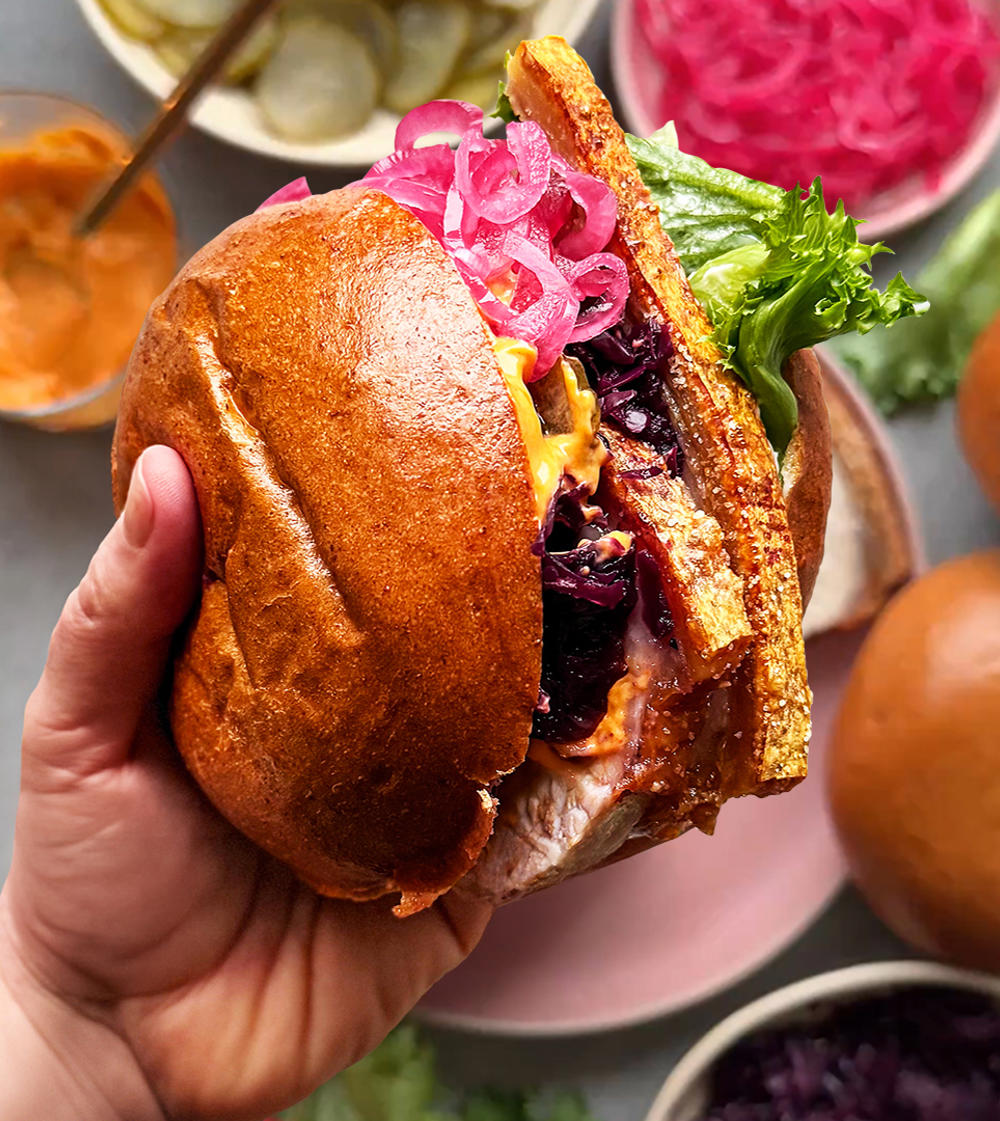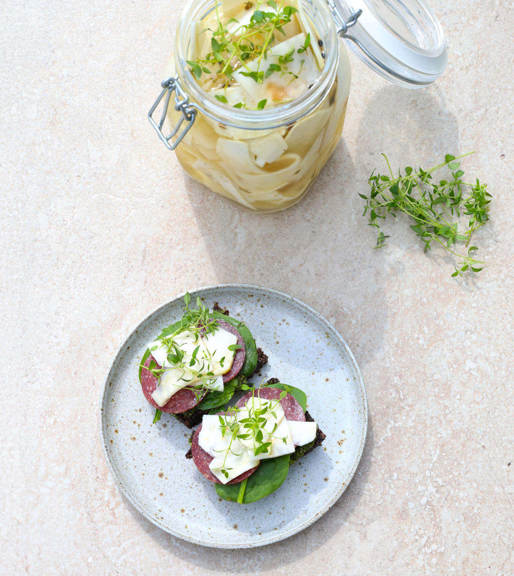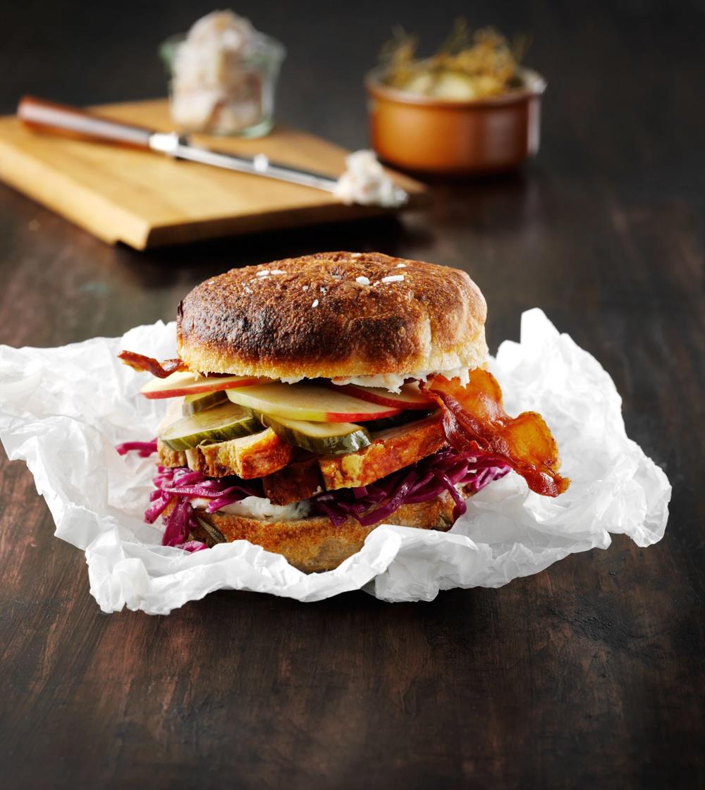 Bålstegt sandwich med flæskesteg og råsyltet knoldselleri