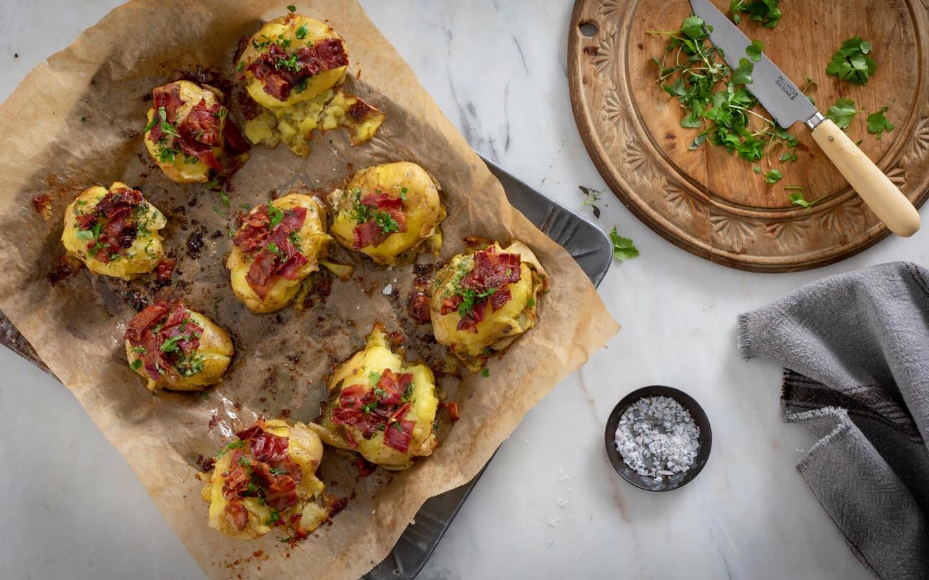 Har du brug for et tip til, hvordan du nemt kan spice den til tider kedelige kartoffel op? Hvis ja, så er opskriften her perfekt til både hverdag og fest. Som mange ved, bliver alt bare lidt lækrere med bacon, derfor har vi her gjort kartoflen lidt mere festlig og smagfuld ved netop at tilføje bacon. Prøv evt. retten som tilbehør til lørdagsbøffen og sammen med en grøn salat.