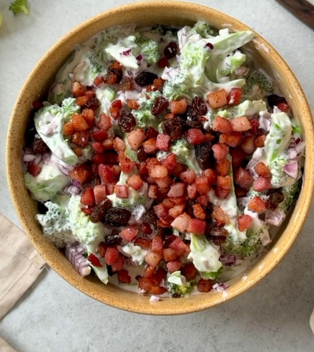 Her finder du opskriften på den sommerlige broccolisalat med sennepsdressing. Denne opskrift er perfekt til 4 personer og indeholder sprødstegt bacon i tern og cremet mozzarella. Skovsyren tilføjer en ekstra strejf til retten, men kan udelades eller erstattes med din foretrukne urt.