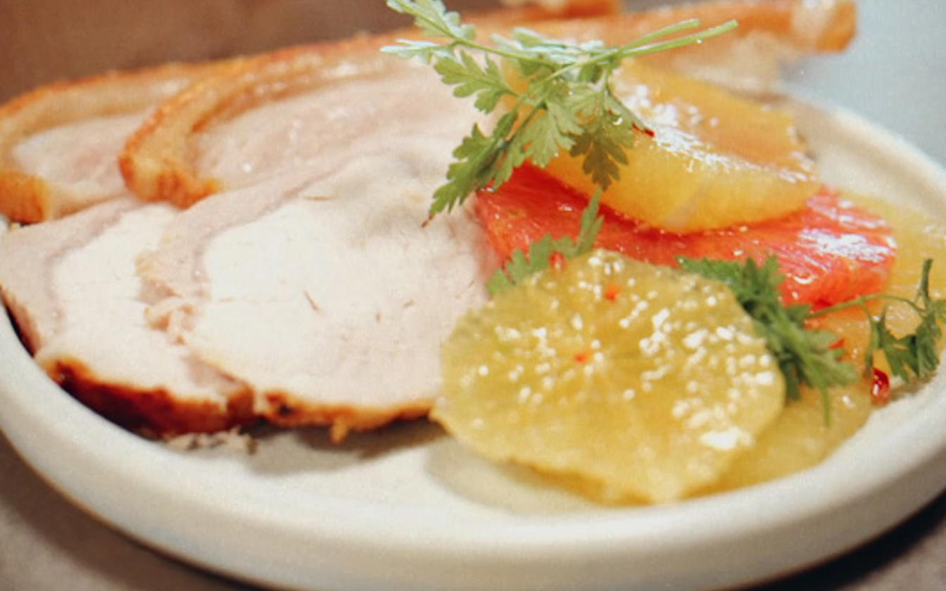 - Selvom citrussalaten smager skønt, som den er, kan du også vælge at servere den til en god flæskesteg med sprøde svær. De friske og syrlige smage i citrussalaten giver det perfekte modspil til flæskestegens knasende sprøde svær og det smagfulde kød. Få opskriften på flæskesteg med sprøde svær.