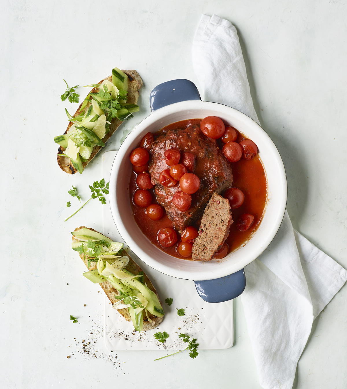 Entrecote med pebersauce, parmakartofler og tomatsalat