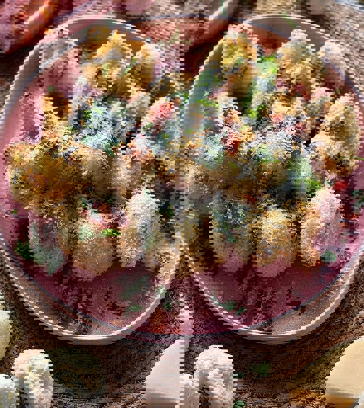 Farseret blomkål med nudler er en nem hverdagsret, hvor klassisk fars får selskab af blomkål og serveres med nudler i en smagfuld kombination. Blomkålen pakkes ind i en saftig fars af grisekød og bages i ovnen, så den får en god overflade og masser af smag. Sammen med nudlerne bliver retten både enkel og alsidig – perfekt til aftensmad, når det gerne må være lidt anderledes end det sædvanlige.
