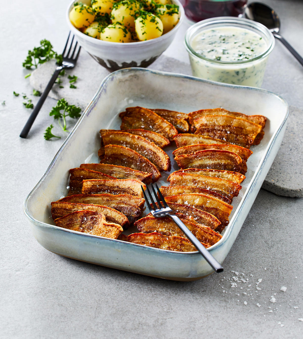 Flæskepandekage er en svensk klassiker, der kombinerer de mest populære retter fra brunchbordet; æg, bacon og pandekager. Til forskel fra den almindelige pandekage tilberedes flæskepandekage i ovnen. Så slipper du for at bakse med pander, paletkniv og pandekagedej. Servér flæskepandekagen til brunch, frokost eller som en let aftensmad. Til pandekagen kan du servere tyttebær, som de gør i Sverige, eller dit eget favorittilbehør.