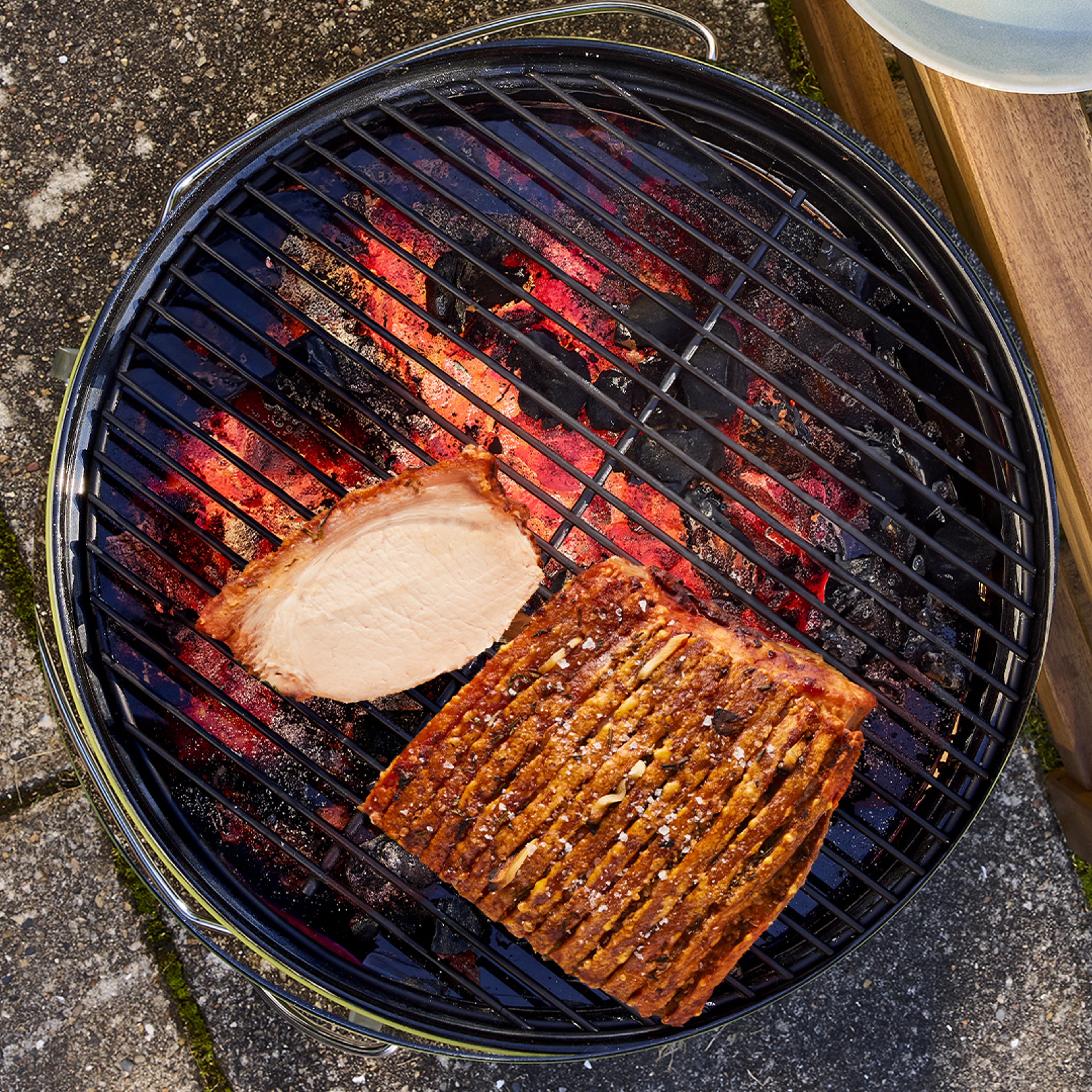 - Salt er nøglen: Gnid groft salt godt ned i alle riller, så varmen kan trænge ind.