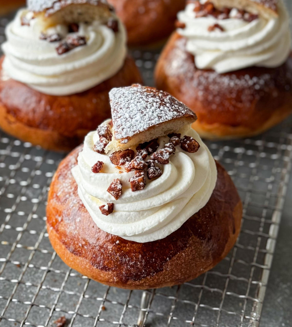 Flødeboller med crispy bacondrys tager den klassiske, søde flødebolle til nye højder ved at tilføje sprødt bacon på toppen. Den bløde skumfyldning og den chokoladeovertrukne bund møder det salte, crunchy bacondrys i en overraskende, men rigtig god smagskombination. Perfekt som snack, lille dessert eller som en utraditionel godbid til fest, hygge og forkælelse.