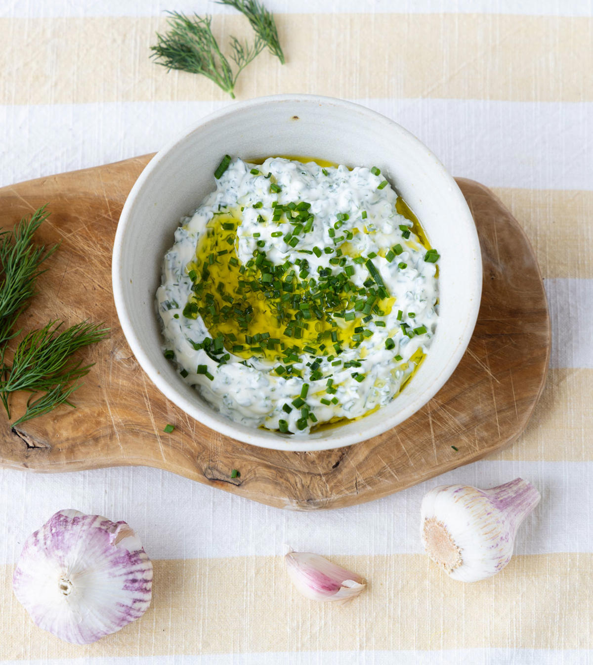 Frankfurtere med friske forårsruller, urtesmør og kethup-dip