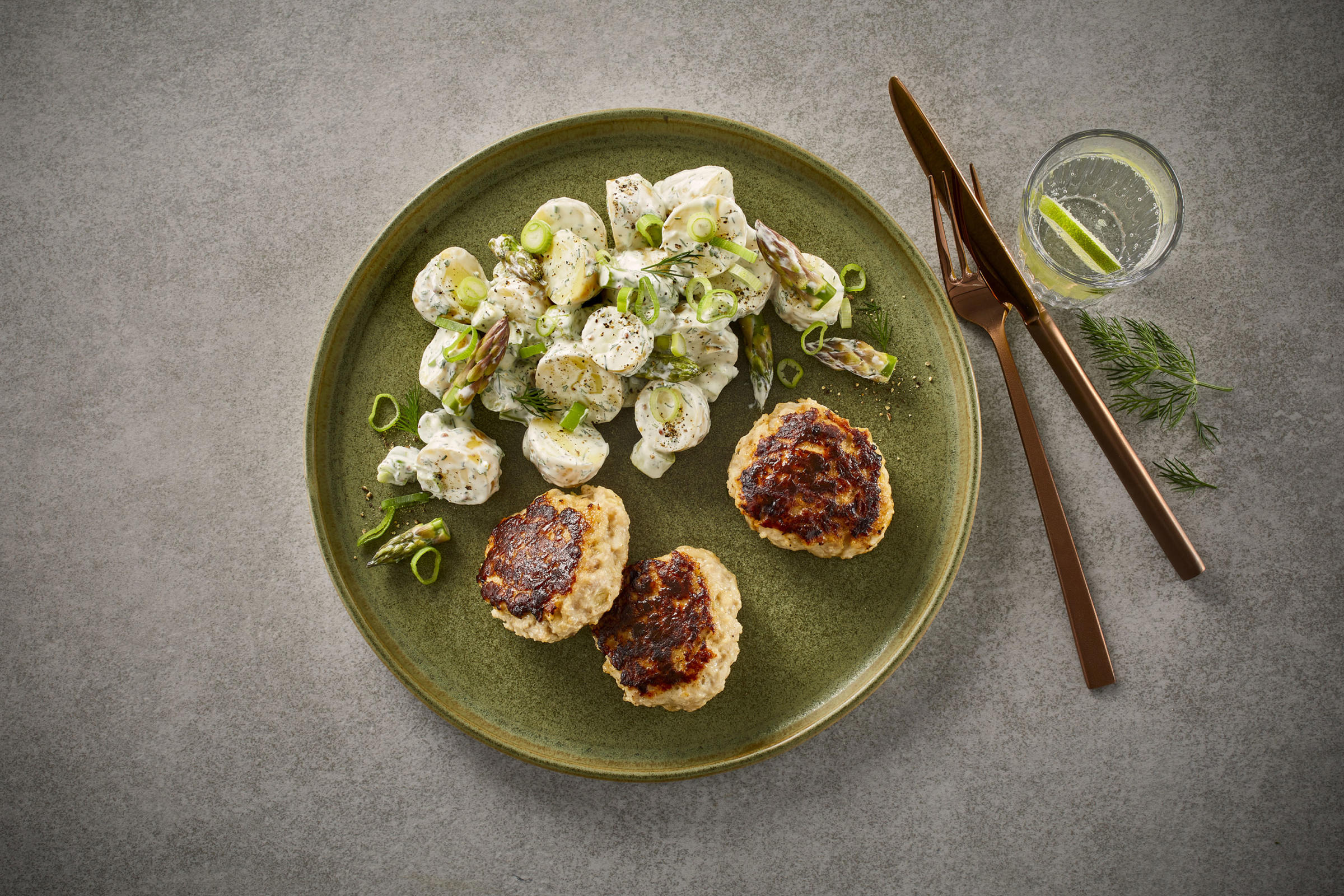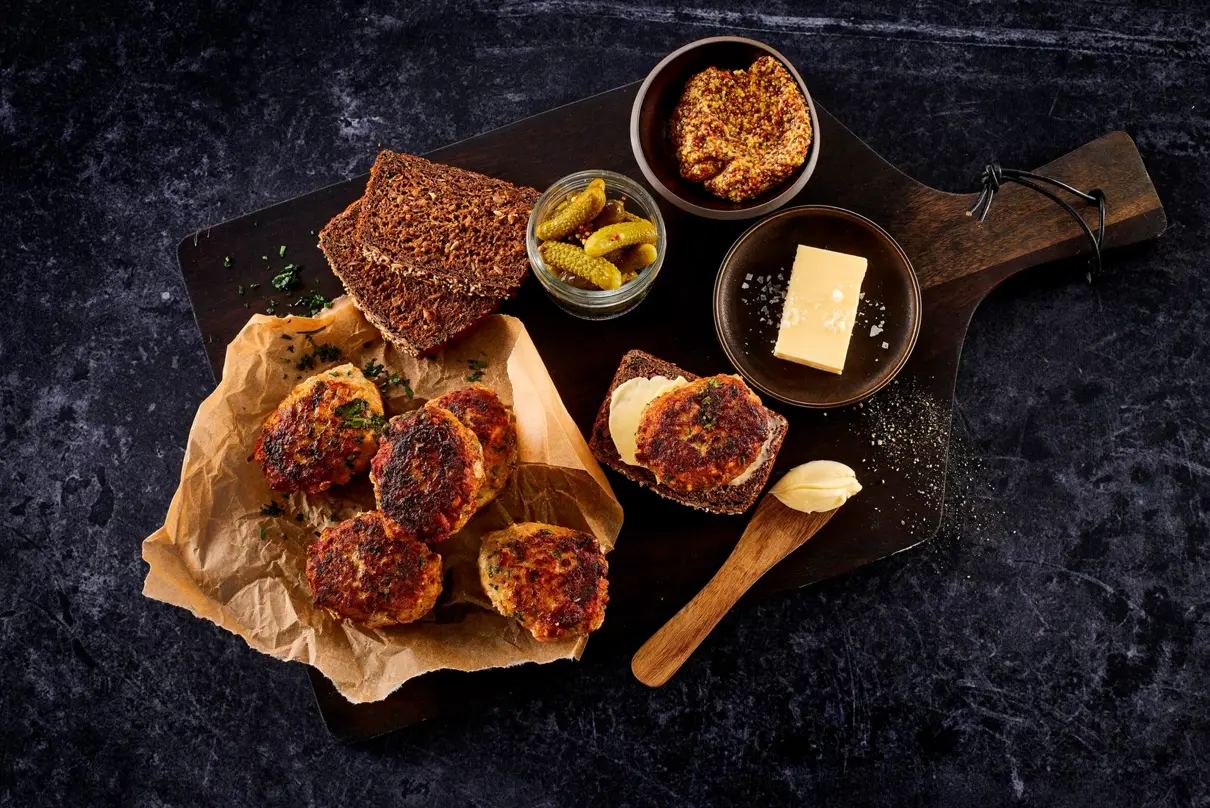 Frikadeller med honningbagte rødbeder og spidskålsslaw