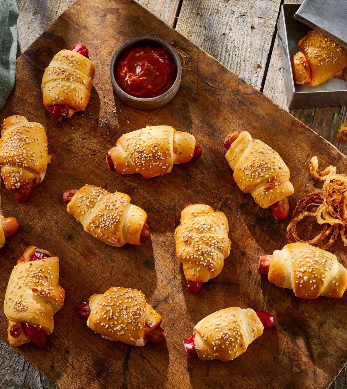 Denne nemme opskrift på pølsehorn er perfekt til både madpakken, picnic eller en hurtig snack. Med færdiglavet fuldkornspizzadej, pølser og et strejf af ketchup kan du hurtigt lave lækre pølsehorn. Vi har valgt at drysse lidt forskellige kerner på toppen for ekstra knas og smag. De nemme pølsehorn er klar på ingen tid og vil med garanti blive et hit hos både børn og voksne.