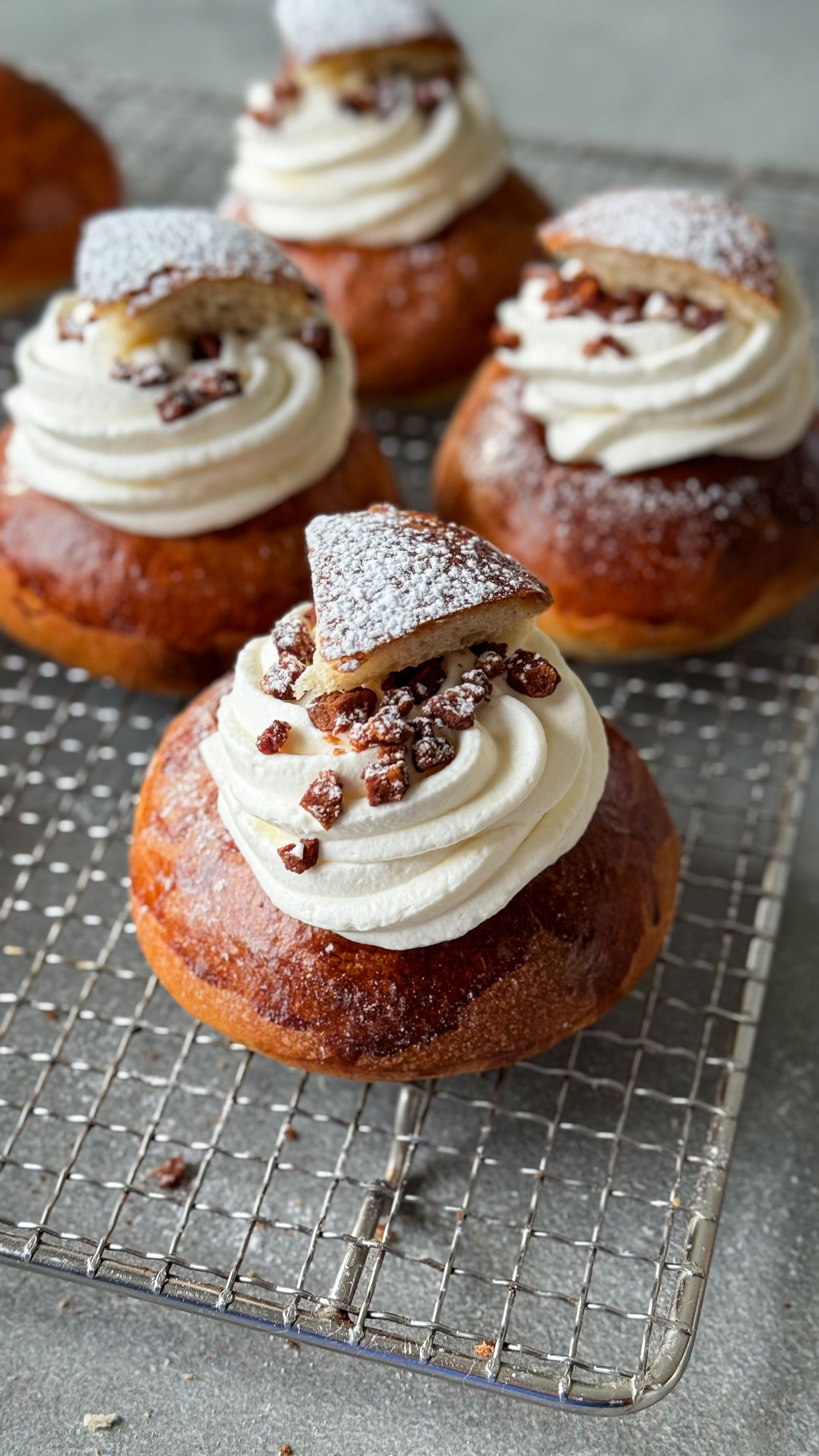 Fastelavn behøver ikke kun være farver, udklædning og slå-katten-af-tønden. Det er også den perfekte anledning til at bage fastelavnsboller, der overrasker lidt mere end normalt. Her får du en klassisk cremefyldt fastelavnsbolle – bare med et lille twist på toppen: sprødt, salt bacondrys. Kombinationen af den bløde dej, den cremede midte og det knasende bacon er lige til at blive glad af. Og ja, den fungerer både til kaffehygge, kollega-overraskelsen eller som et sjovt indslag til ungernes fastelavnsdag.
