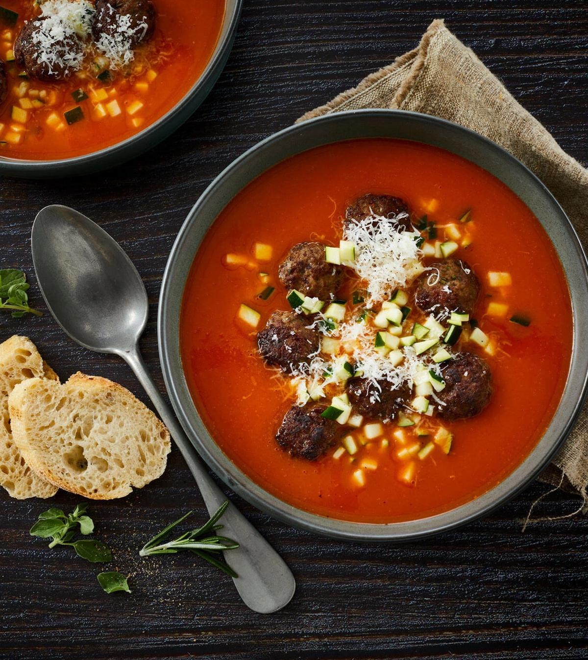 Brug resten af kødbollerne som fyld i en salat. Suppen kan bruges et par dage senere – f.eks. toppet med ristet bacon.
