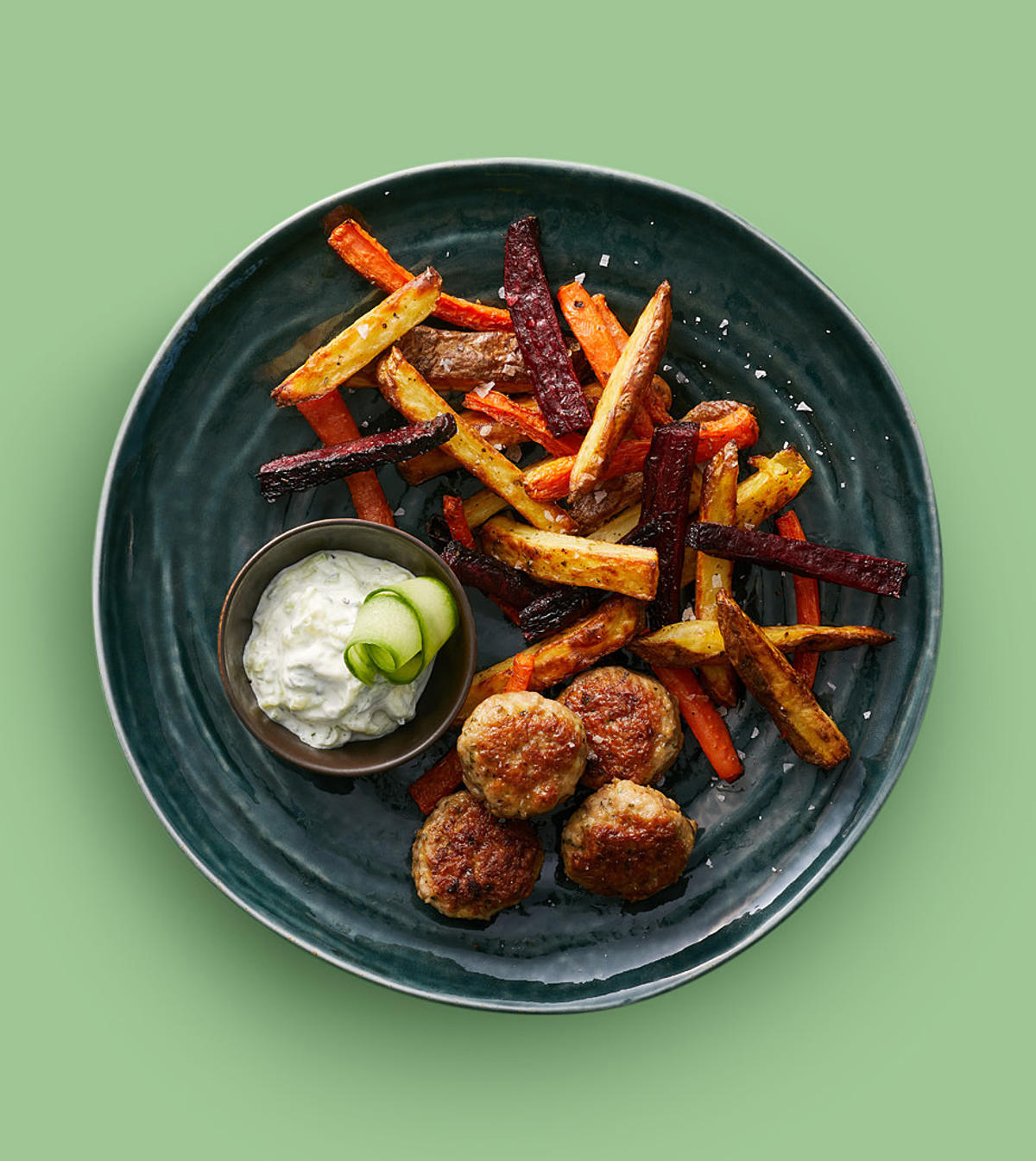 Frikadeller er en ret, som er elsket af mange, og specielt blandt børn er det et stensikkert hit til aftensmaden og i madpakken. I denne opskrift pifter vi den klassiske frikadelle en smule op og tilføjer bacon, feta og oliven - Det giver frikadellerne ekstra smag og et skønt græsk inspireret pift.