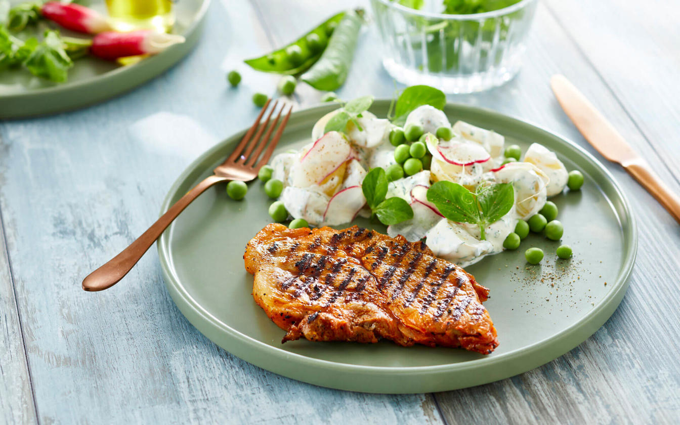 Grillede nakkekoteletter med kartoffelsalat
