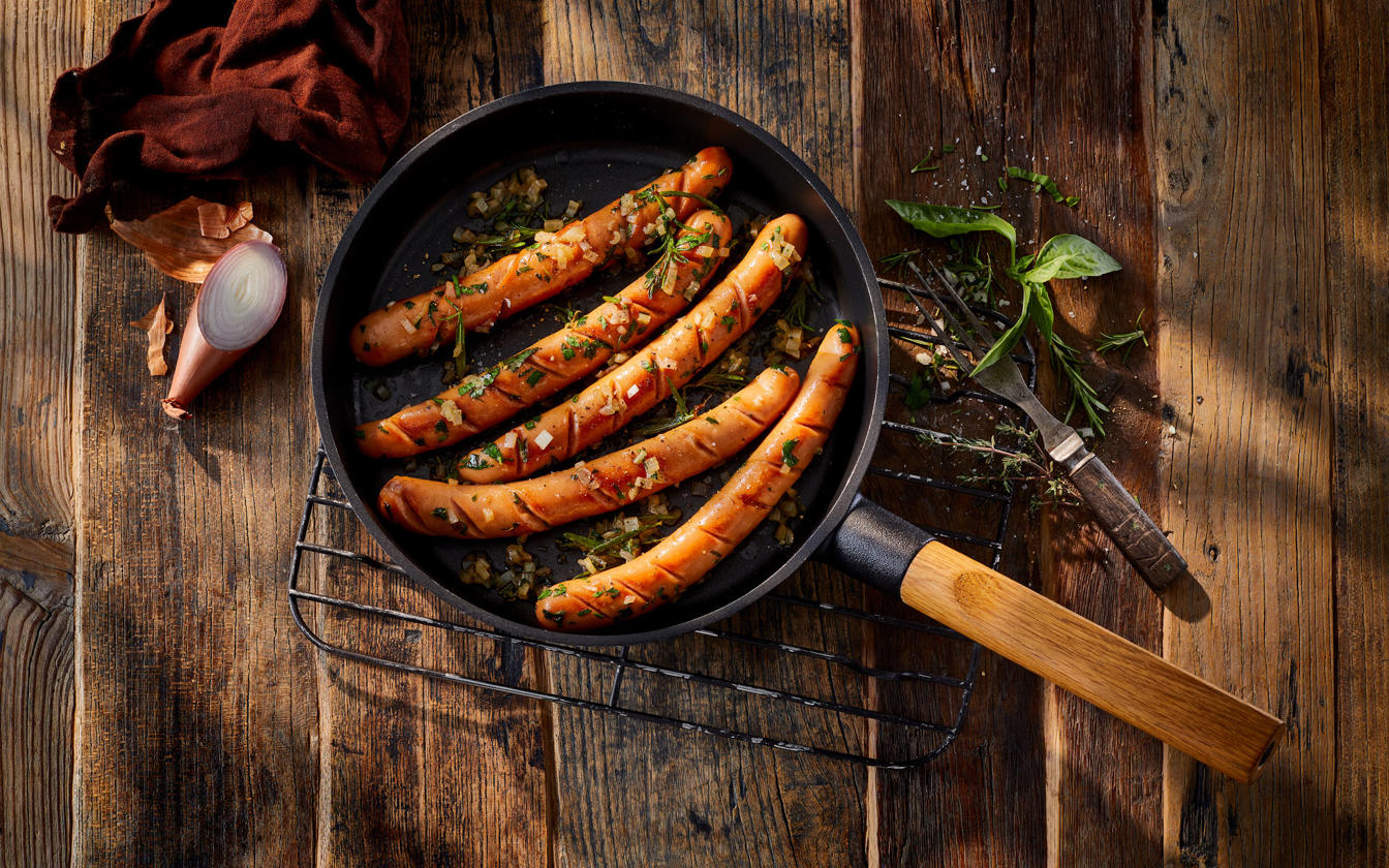 Nogle gange er det den simple ret, der bliver mest vellykket og velsmagende. Denne opskrift med grillpølser i panden med krydderurter er ingen undtagelse. Servér den til aftensmaden, når det skal gå stærkt eller med tilbehør, når der kommer gæster.