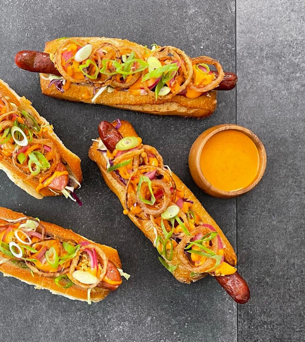 Ristede løg og hotdogs hører uløseligt sammen – og med hjemmelavede løg får du en sprødhed og dybde i smagen, der løfter hele hotdogoplevelsen. Få endnu mere inspiration til lækkert tilbehør og smagfulde twists på den klassiske hotdog her.