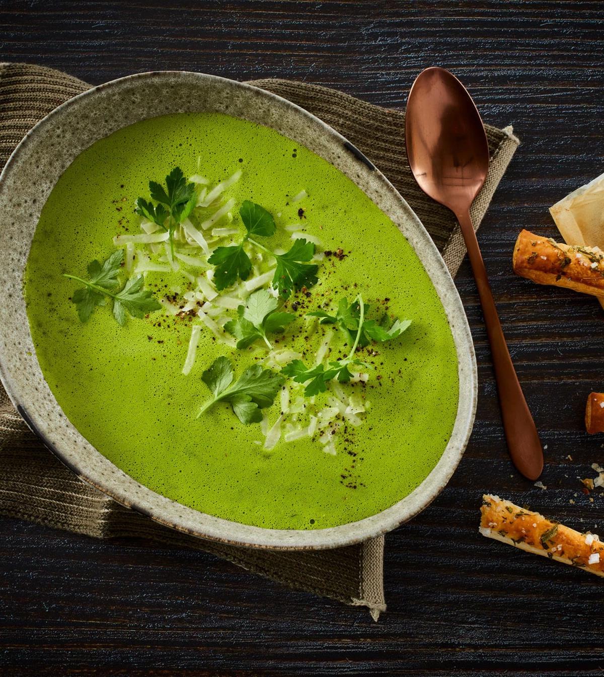 Denne lækre hønsekødssuppe med kylling er din perfekte go to-ret på en gråvejrsdag. Suppen er fuld af smag og varme, og så tager den kun tyve minutter at bikse sammen. Kombinationen af vores populære Mou Hønsekødssuppe, saftig stegt kylling, frisk grøn persille og varm chili forvandler straks en regnfuld dag fra trist og grå til hyggelig og omfavnende. Suppen serveres med sprøde butterdejsstænger, der har et strejf af frisk rosmarin og havsalt, som sætter prikken over i’et og giver smagsoplevelsen et ekstra lag.