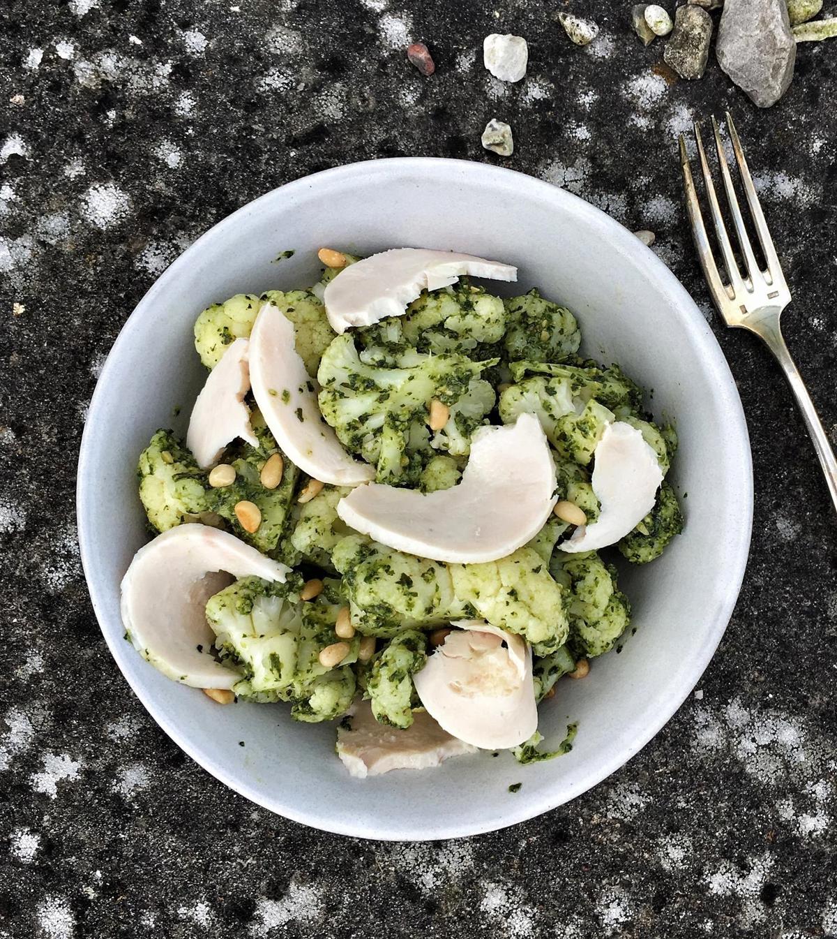 Hotdog med pesto, rucola og pinjekerner