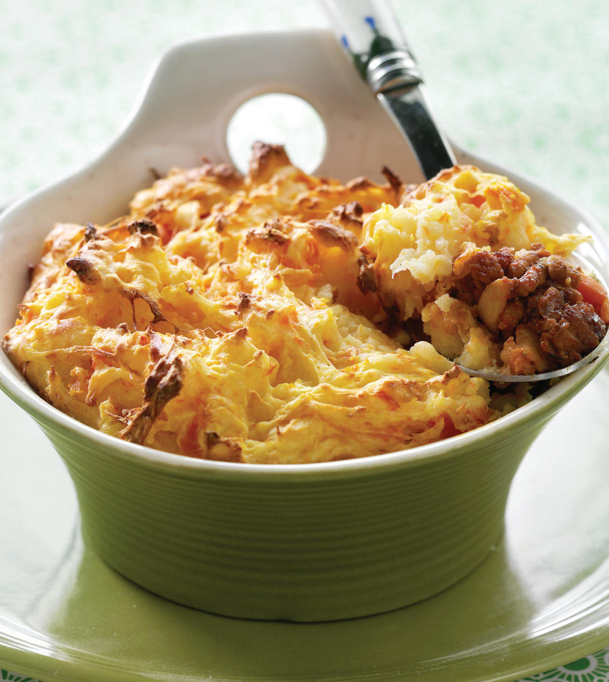 Prøv denne karrykrydrede Shepherd's Pie – en nyfortolkning af den klassiske ret med et aromatisk twist. Den krydrede kødsauce med oksekød og grøntsager toppes med et cremet lag kartoffelmos, der smelter på tungen. Perfekt til de dage, hvor du vil forkæle smagsløgene.
