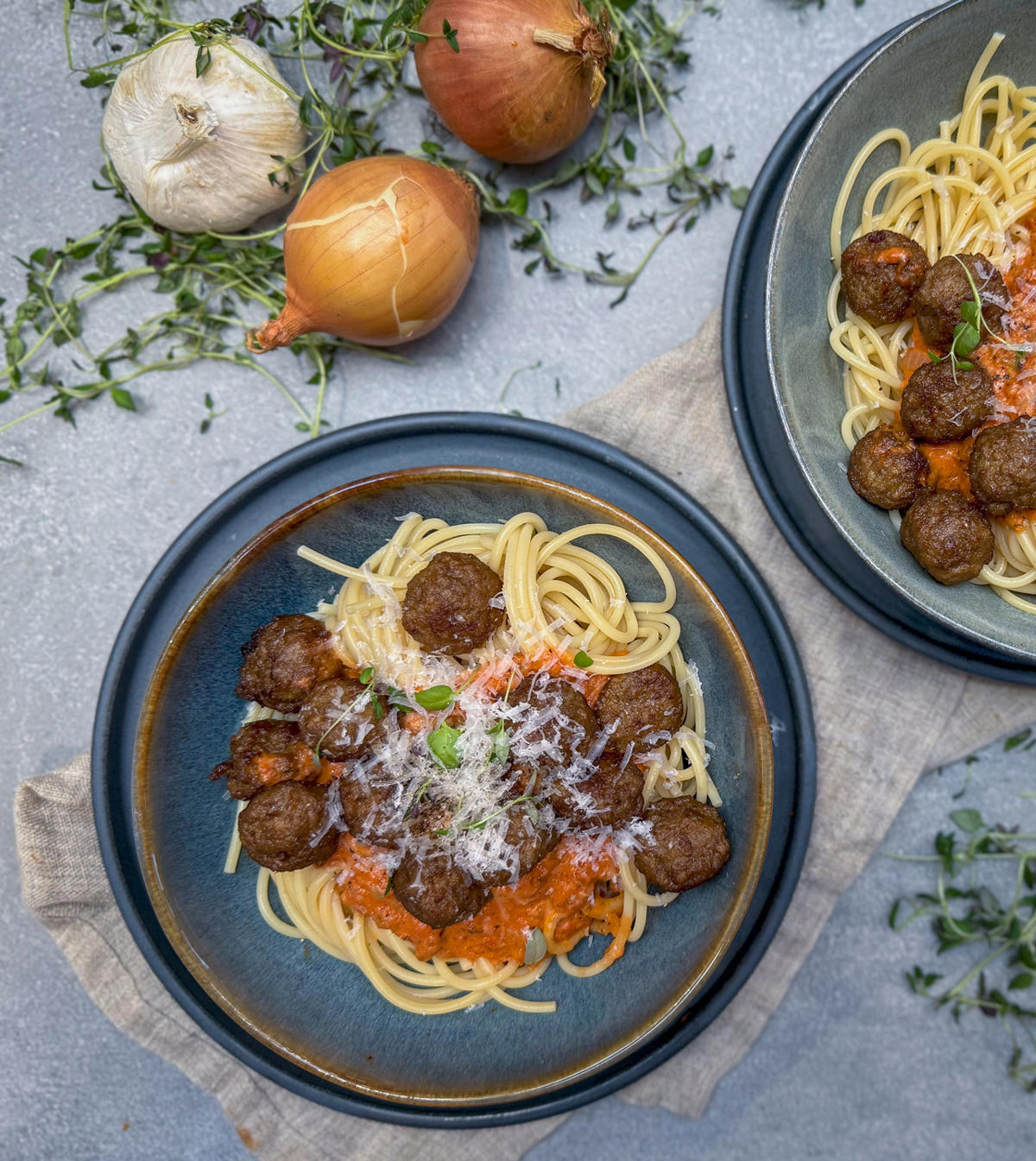 Forkæl dine smagsløg med denne opskrift på spanske kødboller i cremet svampesauce, der forener let krydrede kødboller med en rig og fyldig sauce. Saucens dybe runde smag skabes i en kombination af svampe fx champignon og østershatte, løg, teriyaki, bouillon og piskefløde. Anret de saftige kødboller, der er svøbet ind i den lækre cremede sauce, med ris og friskhakket persille på toppen. Du er nu klar til at servere en ægte komfortret, der vil begejstre både familie og gæster, med sin hjemlige velsmag.