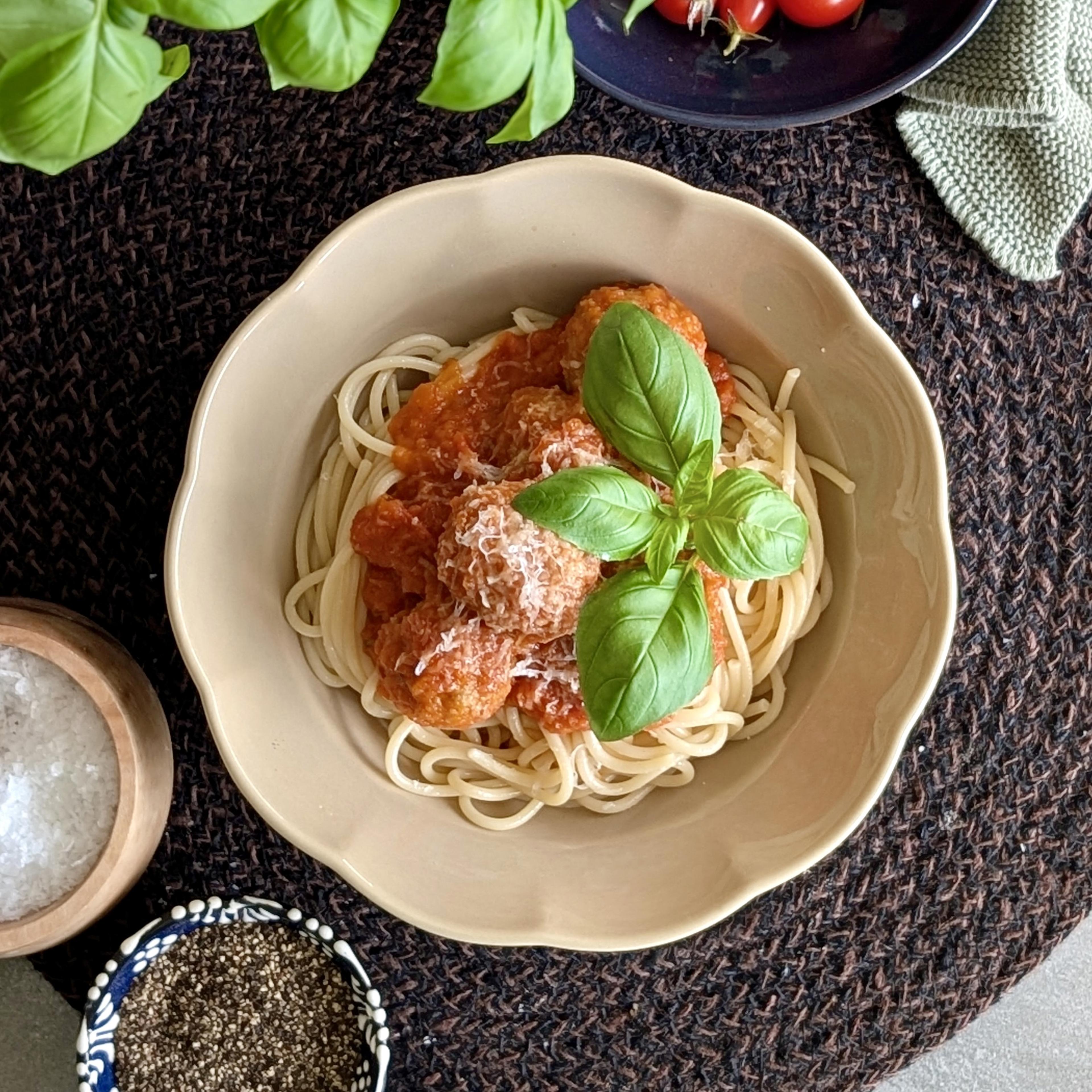Kødboller i tomatsauce er en klassisk og velsmagende ret, der aldrig går af mode. De saftige kødboller laves med hakket oksekød, parmesan og friske krydderurter, som giver masser af smag og en lækker konsistens. De serveres i en fyldig tomatsauce med løg, hvidløg og oregano, der giver en skøn balance mellem sødme og syre. Sammen med spaghetti og et drys parmesan får du en ret, der både er nem at lave og elsket af hele familien. Perfekt til hverdagsaftener, hvor maden gerne må være både klassisk og fuld af smag.