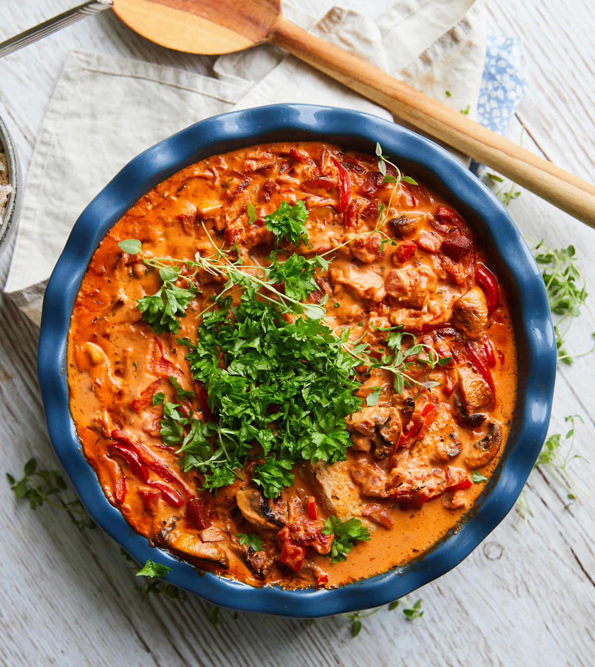 Krogmodnede koteletter med tortellini i blå ostesauce
