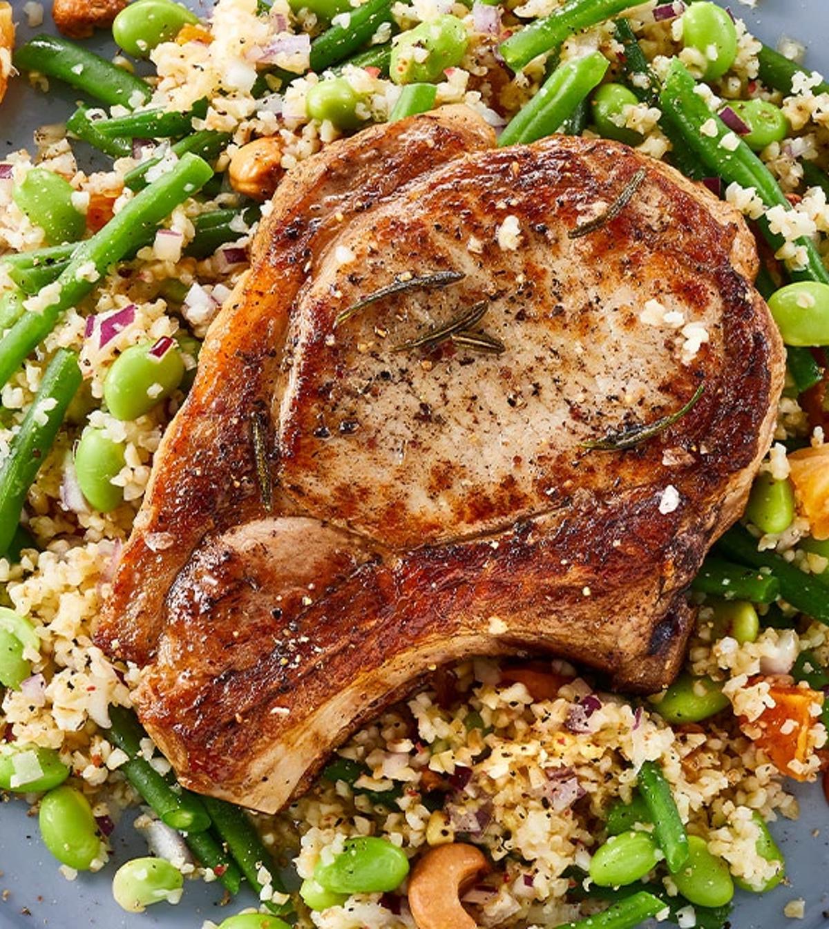 Saftige grillede skaftkoteletter, marineret i en rødvinsmarinade, serveres i denne opskrift med sprødt sommergrønt – en perfekt kombination til en smagfuld og sommerlig middag.